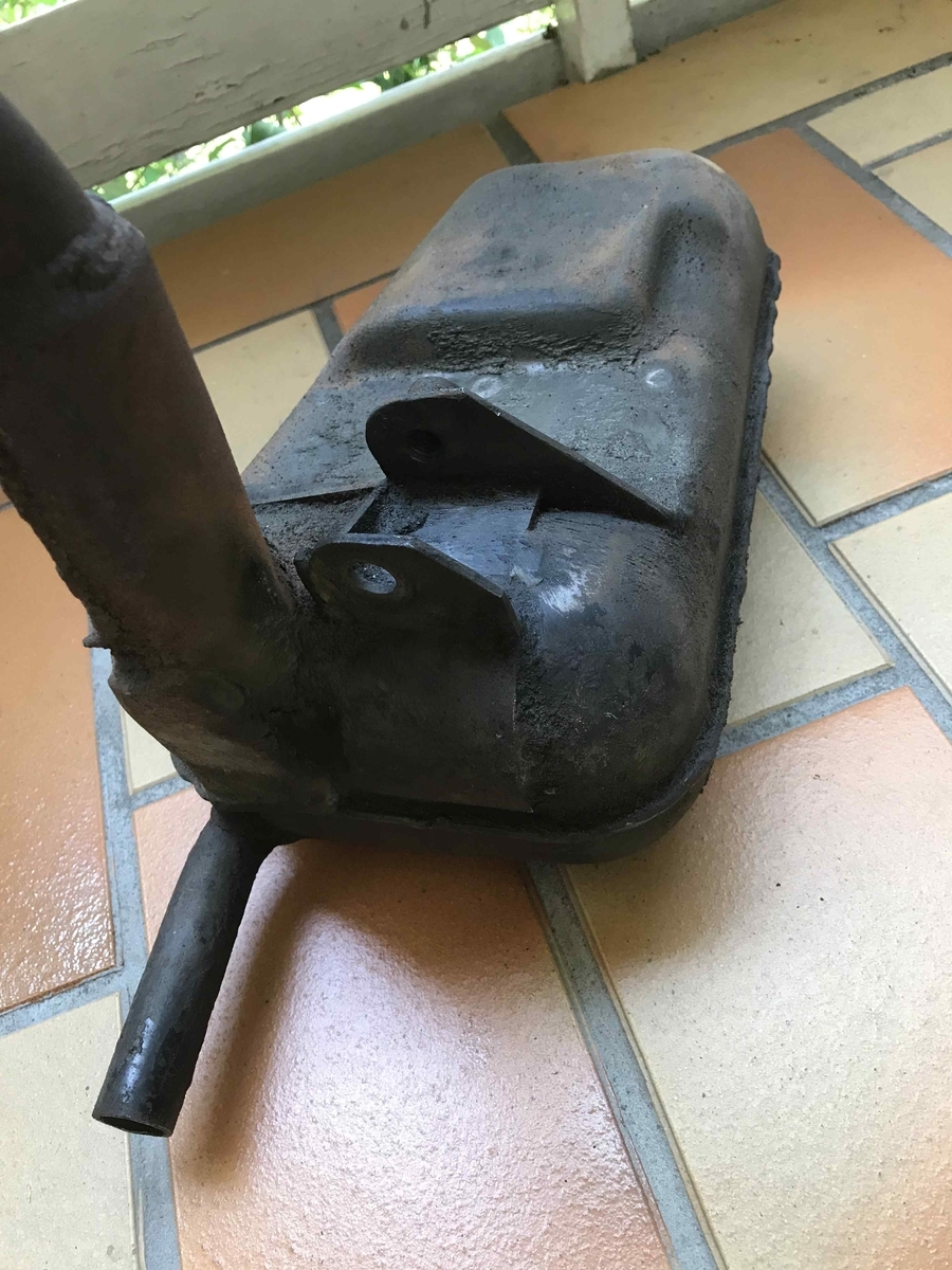 Aber, dann habe ich einen günstigen gebrauchten originalen Vespa Auspuff bekommen, der von außen auch noch einen seht guten Eindruck macht. Also gestern raufgebaut und mal im Keller kurz angelassen - die Vespa ist mindestens genau so laut (wenn nocht lauter)