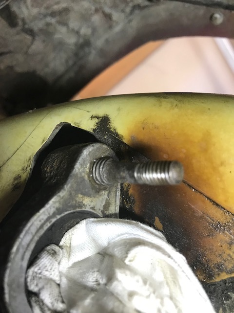 • Der Stehbolzen gehört so, ein Ende dicker, eins dünner. Nur weiter hinein gedreht gehört er.