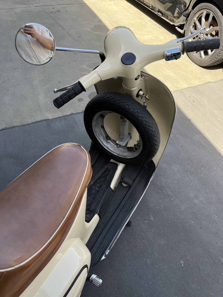Habe an anderer Stelle gelesen, dass die Farbkombination auf Asia deutet (Sitz braun, Lack Creme). Die Farbkombination gefällt mir, es geht mir darum nicht über den Tisch gezogen zu werden mit Asia-Schrott. Es waren neue italienische Papiere dabei, die Vespe ist unrestauriert.