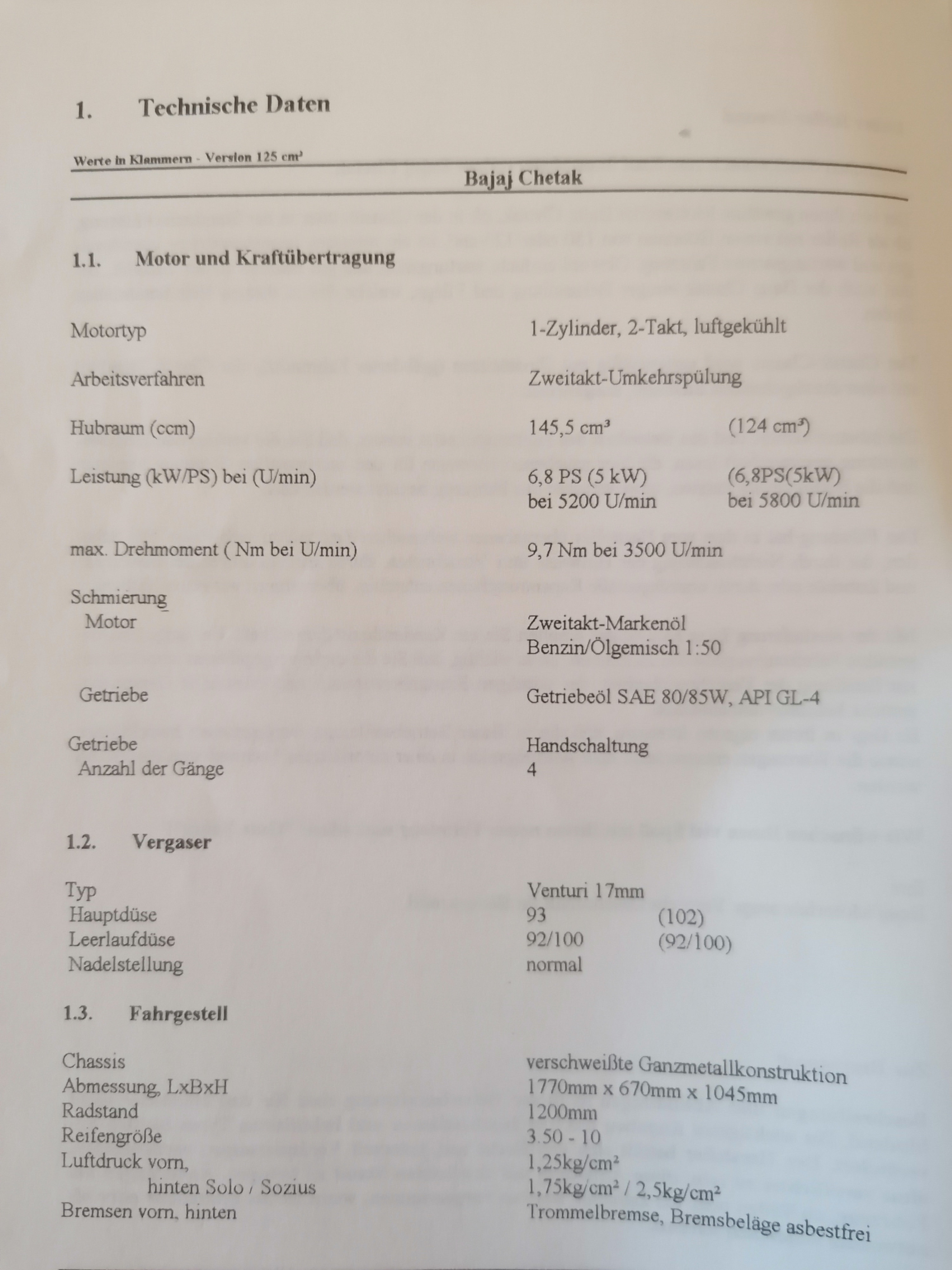 seit letztem Samstag steht eine 150er Bajaj Chetak Classic aus dem Jahr 1994 bei mir. Habe ich einem älteren Herren abgekauft. Noch im Verkaufsgespräch fragte ich ihn, was die denn tankt und er antwortete: 1:25.