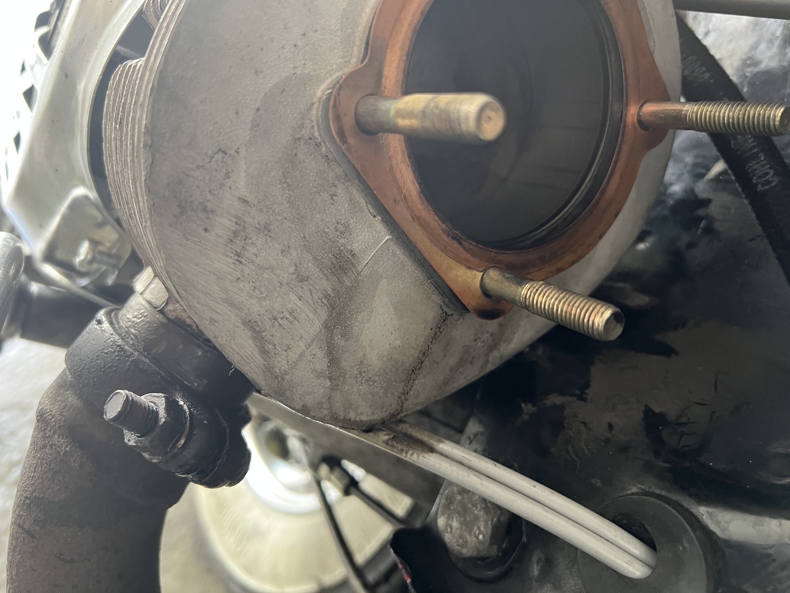 Dein Kopf sieht dicht aus. Wenn er das nicht wäre, hättest Du da Siff von Gemisch. Dein Auspuff ist aber wohl nicht komplett auf dem Flansch drauf. Dann sifft das natürlich prächtig.