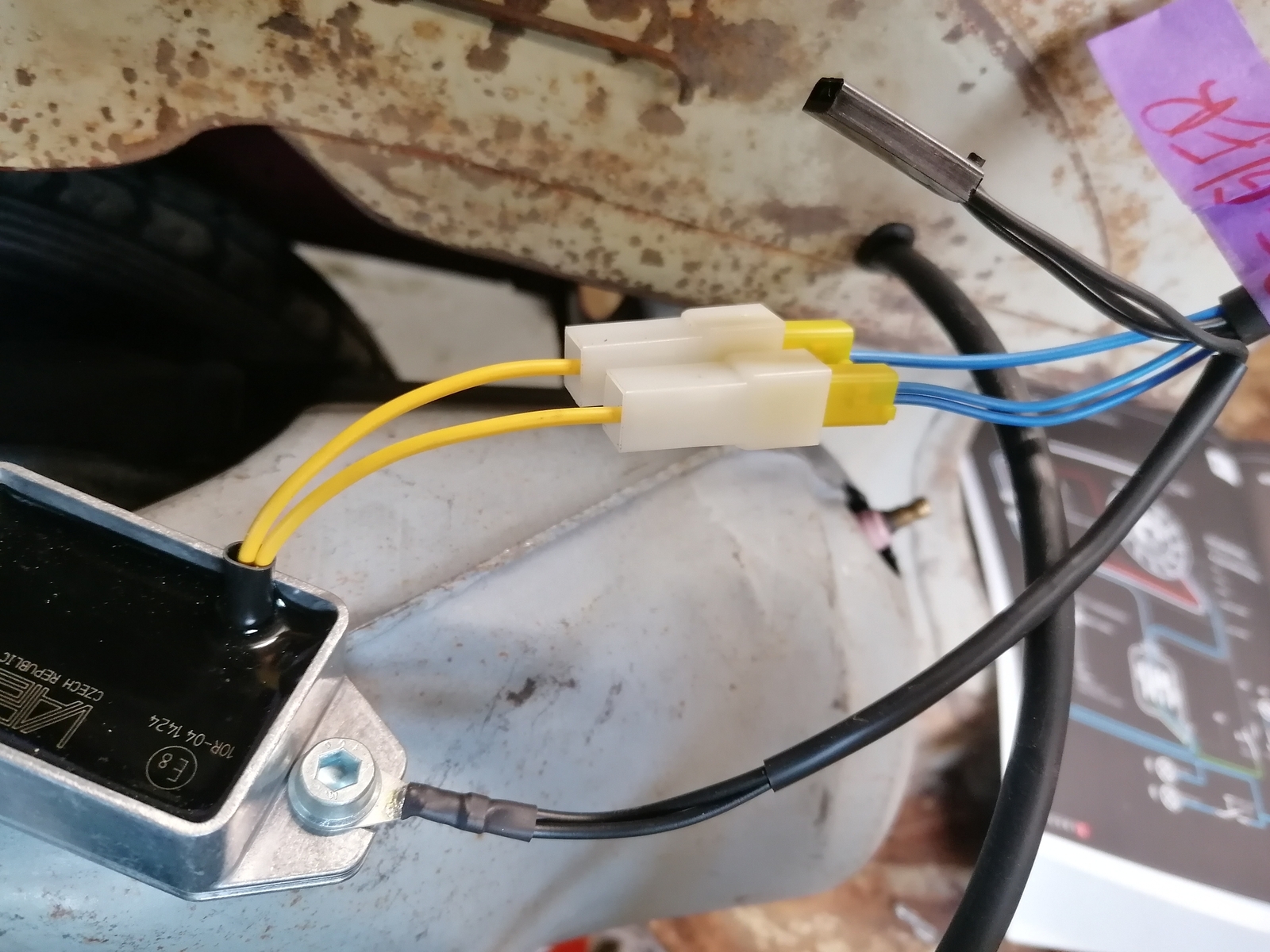 Die blauen Kabel mit Stecker kommen auf die gelben an den Spannungsregler