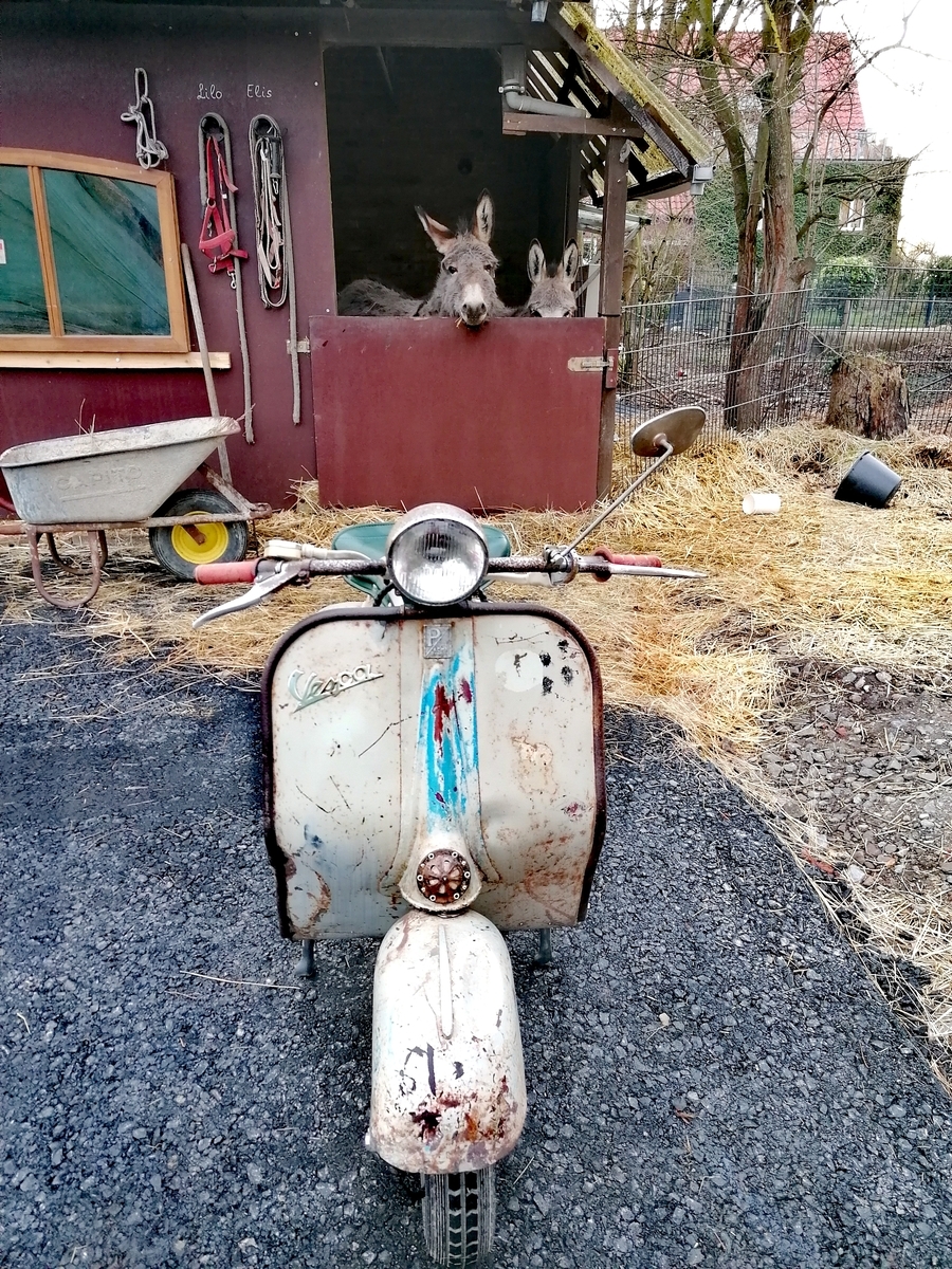 Meine Tochter als Vespa- und Ape-Fan stünde da jetzt vor einer schwierigen Wahl, zu was sie jetzt zuerst gehen sollte. Zu den Süßen Eseln oder zu der Acma... ![]()