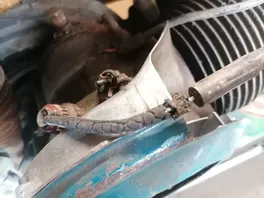 Beule wird dann so gut es geht auch rausgedengelt. Dann kommt ein neues Schlitzrohr drauf...