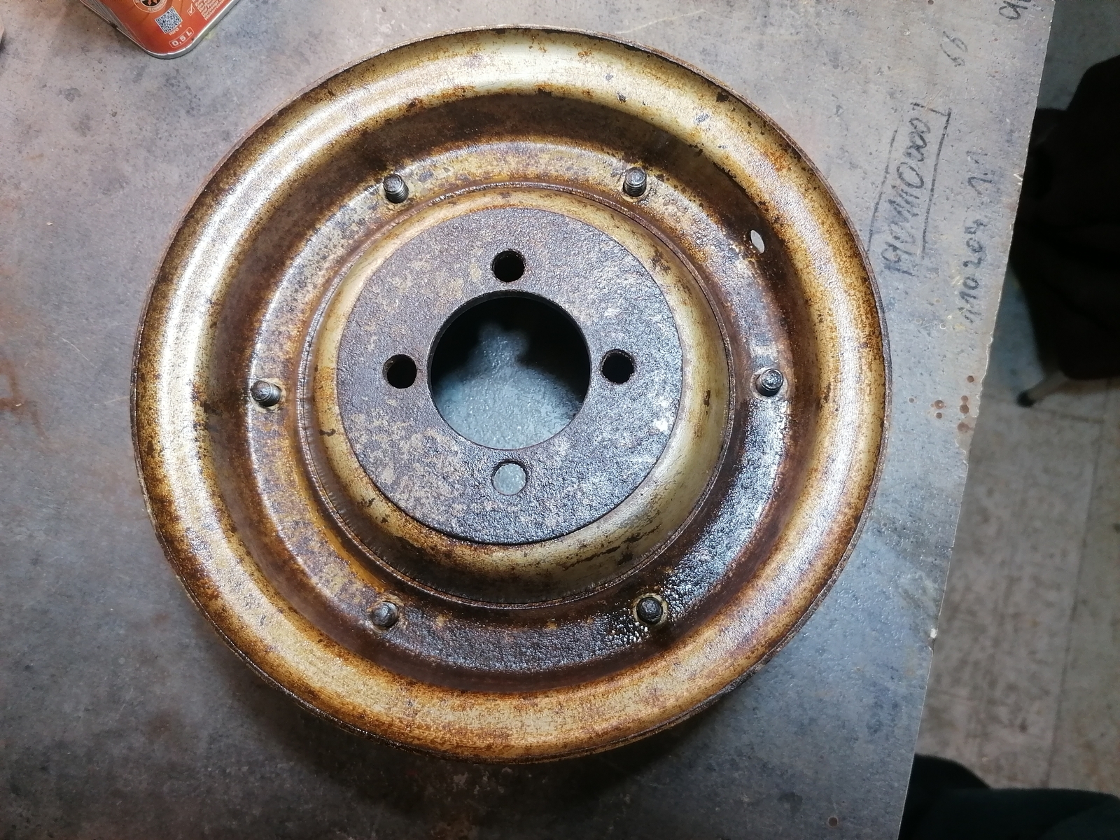 Und ich bin froh das ich die Felgen nicht hab strahlen lassen. Das ist die Felge die ich aus Bockhorn habe. War optisch komplett verrostet und dreckig. Habe die mal sauber gebürstet. Da kam eine leicht Gold schlimmerene Farbe zu Tage. Oder es war mal ein Silber welches durch den Rost goldig geworden ist. Wer weiß...