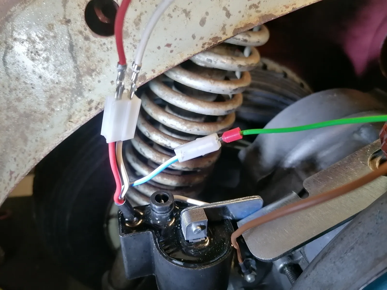 Und das grüne aus dem Kabelbaum auf das Blau/weiße der Zündspule.