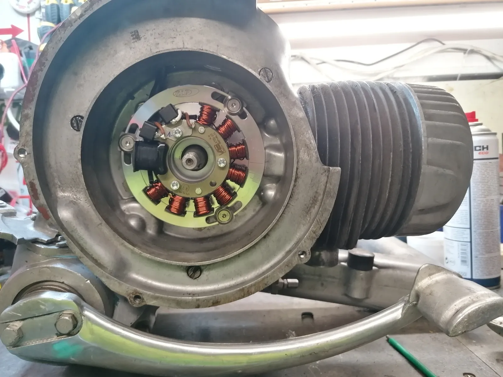 Irgendein Dingens für Vespas, das von innen am Schaltrohr bei den Kisten mit Gußlenker angebracht wird. PX oder was weiß ich.
