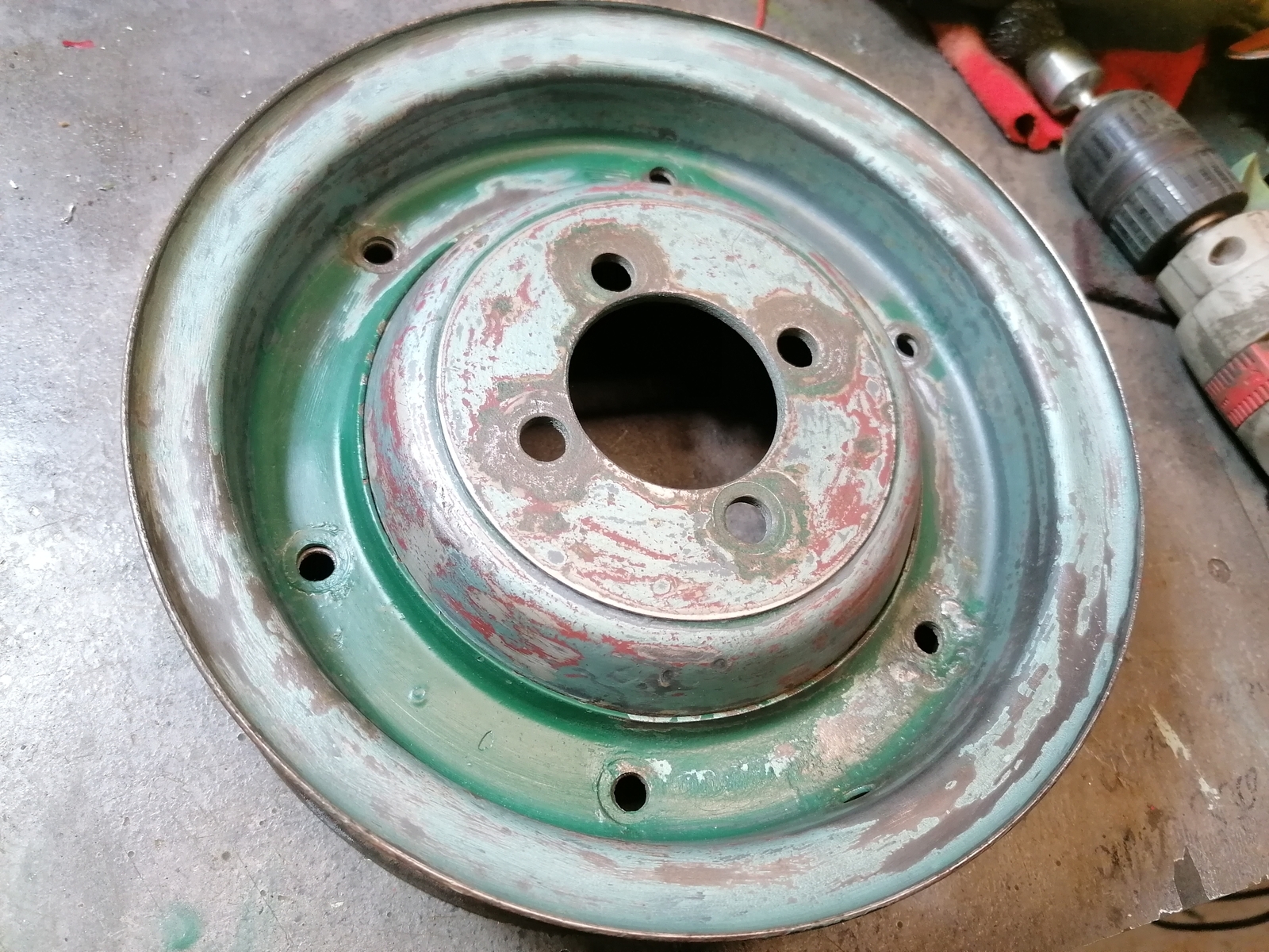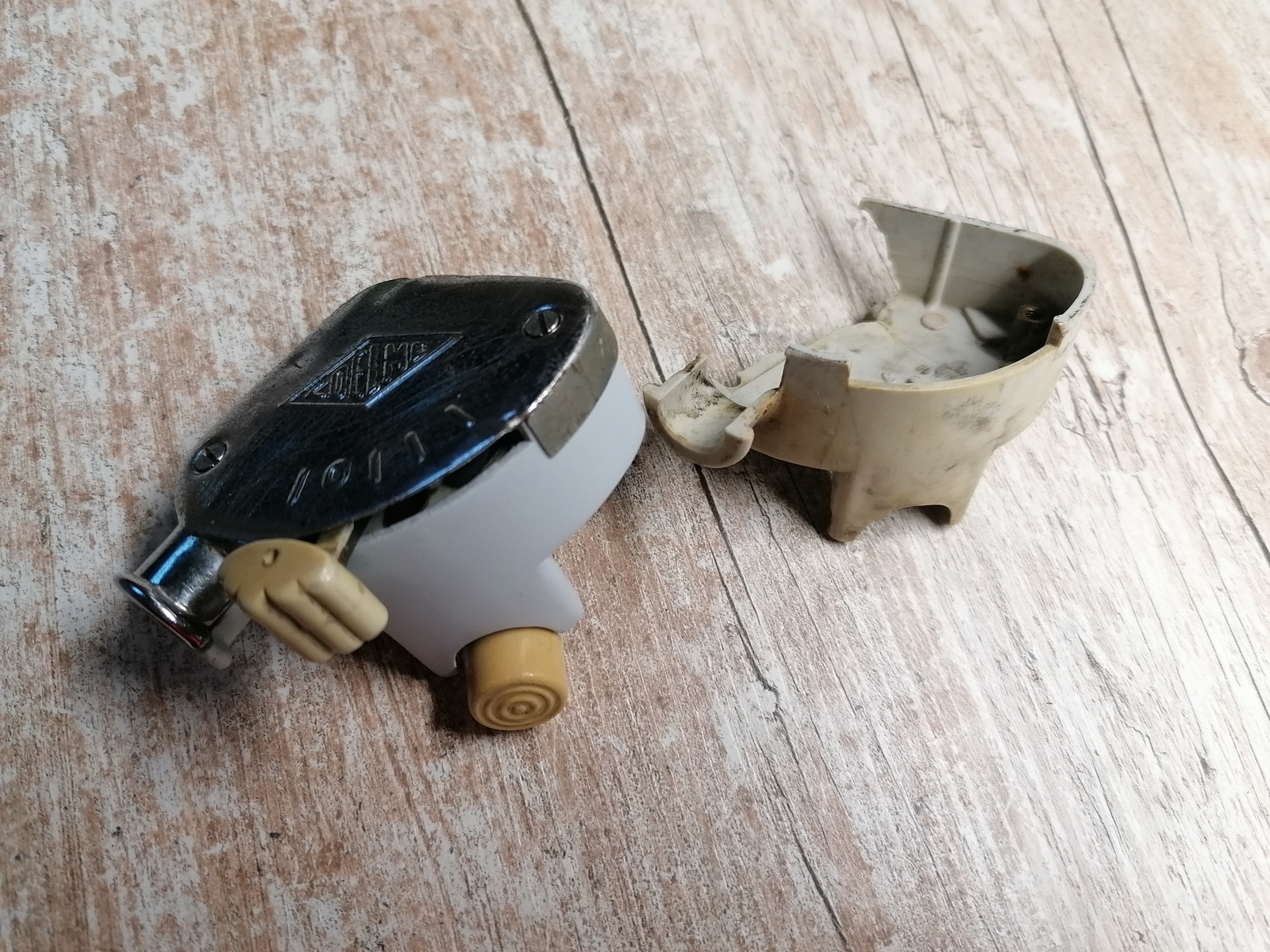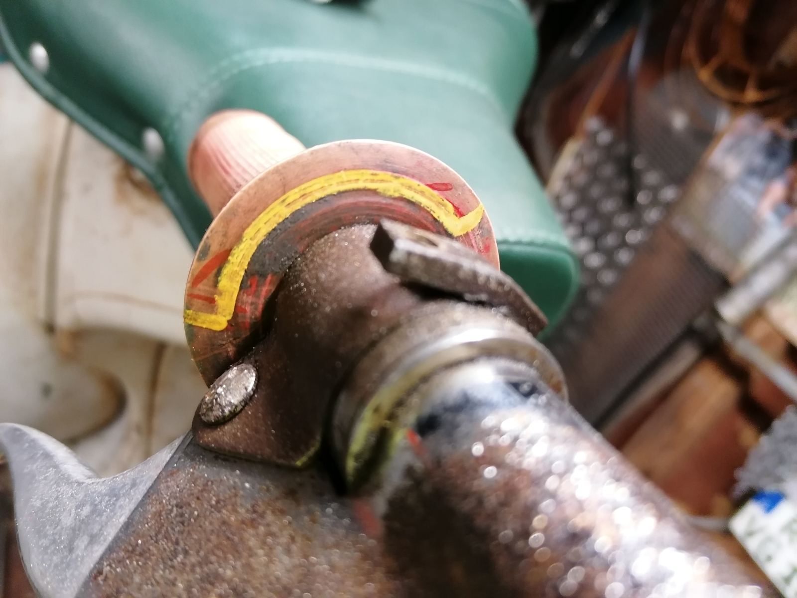 Zwischen Deckel und meiner Messingscheibe auf dem Schleifer sollte eventuell noch eine Isolierung, also mach ein Stück Klebeband innen in die Mitte von dem Chromdeckel.