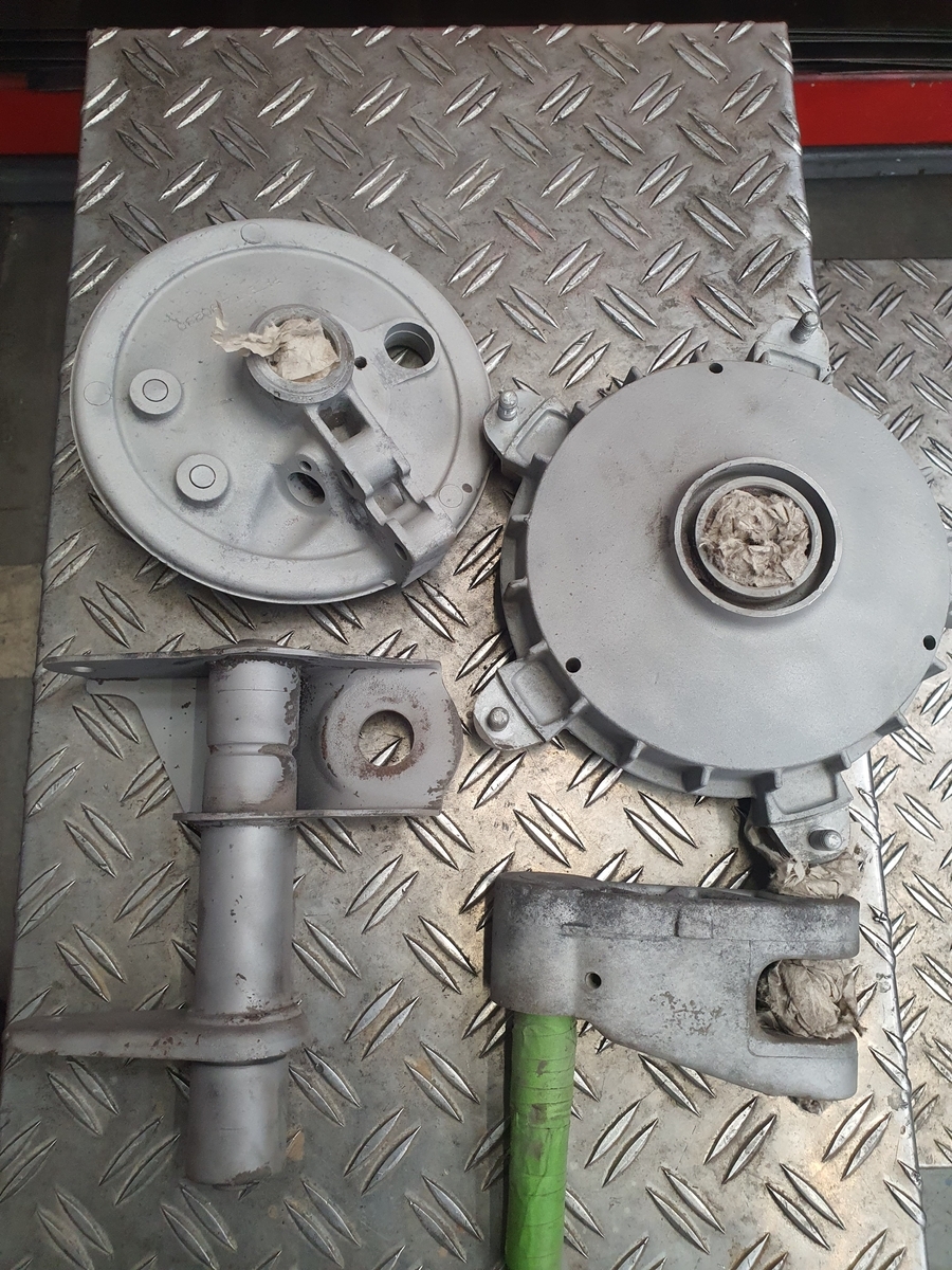 Die Teile der Vorderachse habe ich nun alle gestrahlt und ich werde nun mit dem Lackaufbau beginnen.