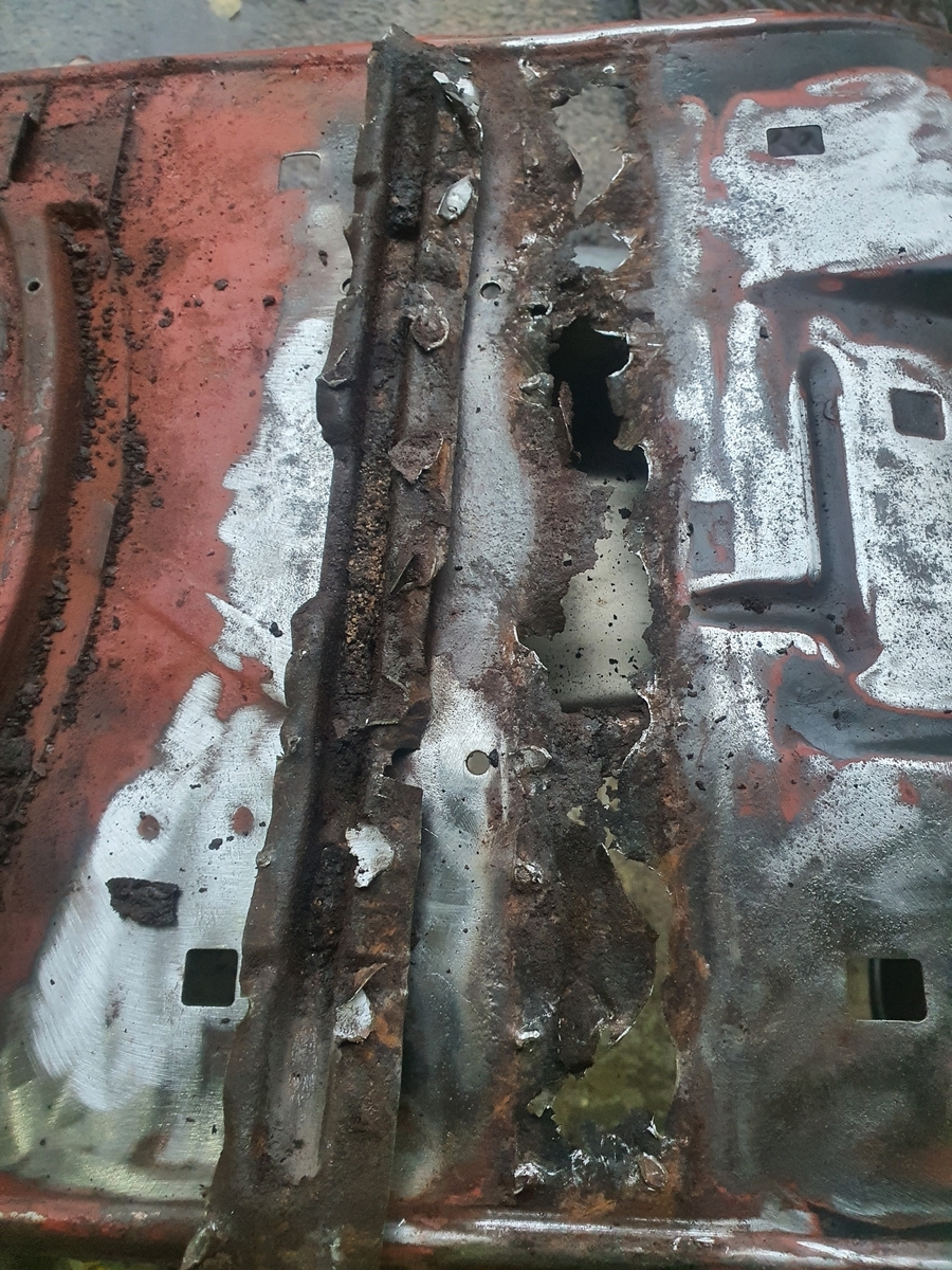 Ich habe heute die Verstärkungstrebe vom Bodenblech gelöst und zum Schweißen vorbereitet. Reparaturblech ist bestellt.