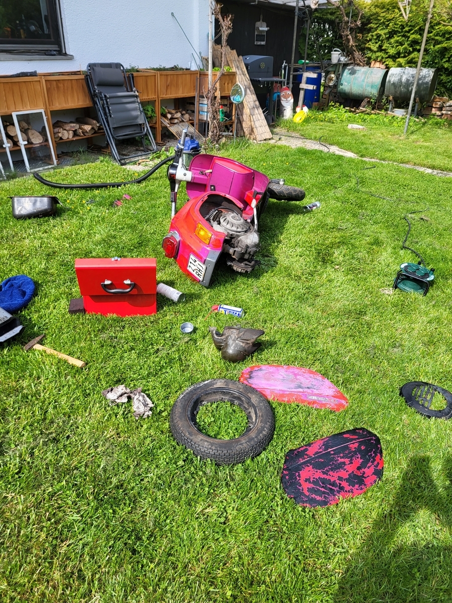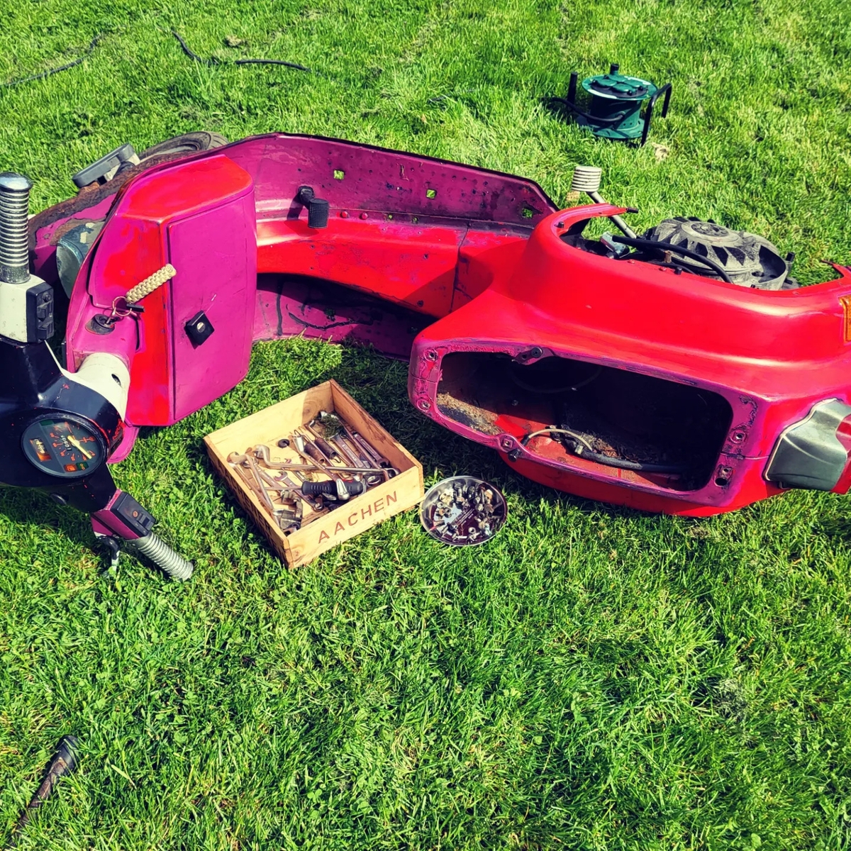 So, hab den Vatertag genutzt und habe etwas an der Familien Vespa geschraubt.