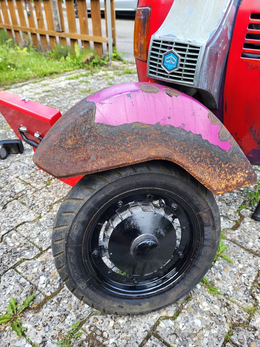 Dann habe ich noch die Spur korrigiert, nach einem zum Glück vergeblichen Versuch das Lenkradschloss zu knacken ist die Vespa stark nach Links gezogen. Das war jedoch recht einfach. Jetzt rollt sie brav geradeaus.