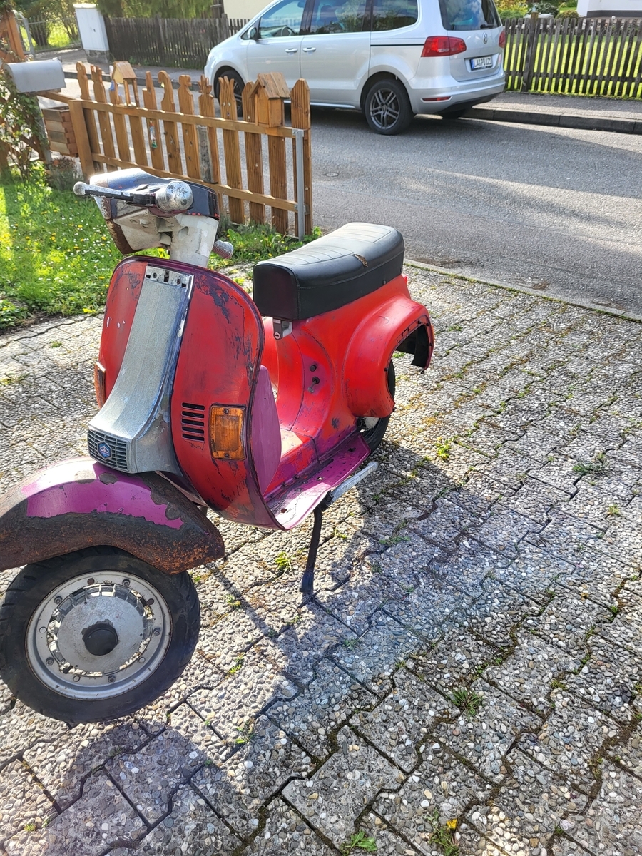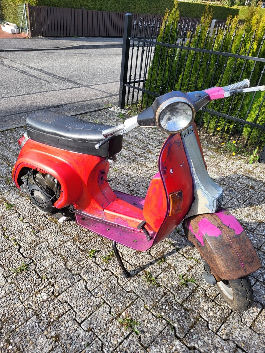 das hatte ich mir auch schon überlegt, aber da die rattig werden soll wäre sandstrahlen und lacken zu perfekt. Zerlegen werde ich sie wohl auch noch, aber später. Aktuell habe ich dafür keinen Platz, muss erst noch was anderes, was nichts mit Vespa zu tun hat, zuende bringen. Das war eher "Erfahrung mit Aceton" sammeln und einen Grund haben nicht mit der Frau in die Stadt zum Shoppen zu müssen...