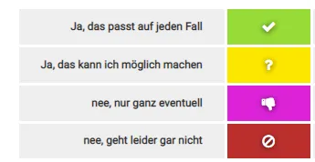 (Das Tool ist ähnlich wie Doodle, nur nicht so datenhungrig und in D).
