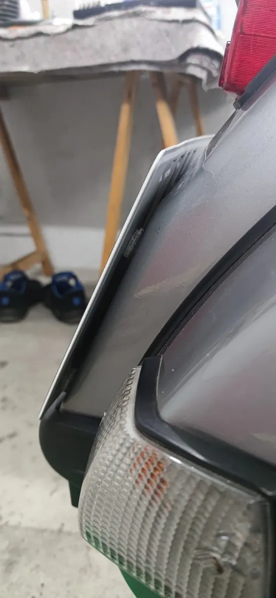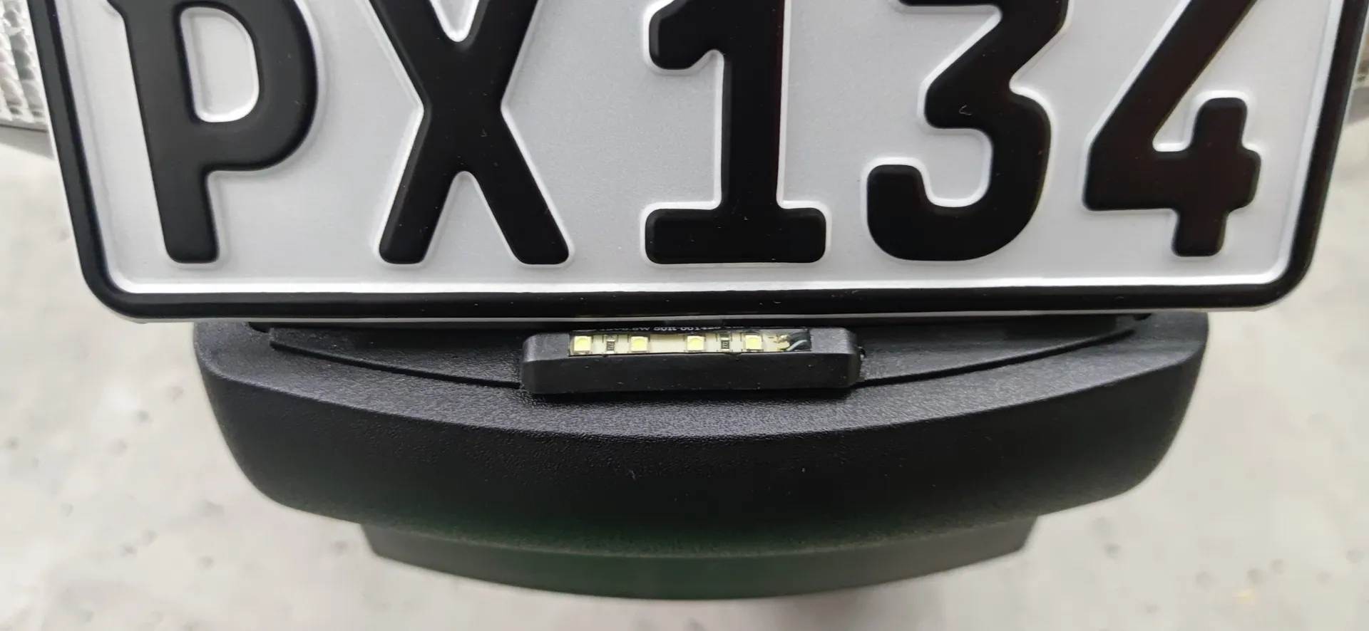 Die Kennzeichenbeleuchtung habe ich vorne auf den Halter montiert und die Leitung hinter der Stoßstange an dem Rahmen innen hoch in das Rücklicht verlegt.