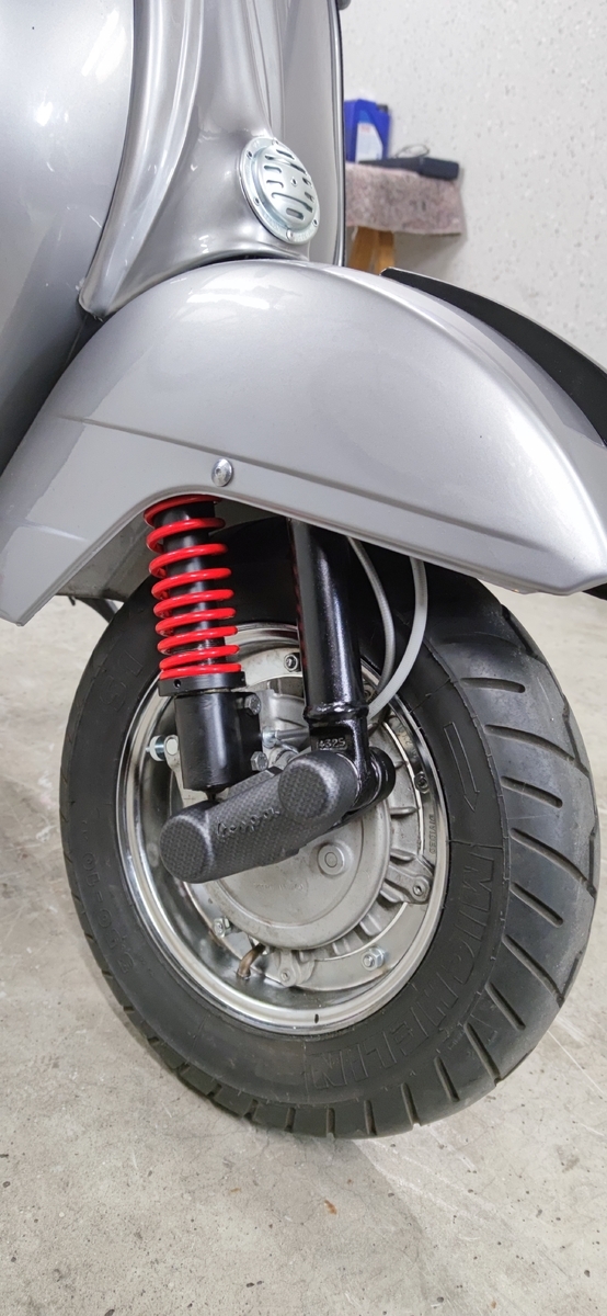 Felge und Reifen sind montiert. Alles läuft wie es soll. Um die Vespa ummelden zu können muss ich vorher zum TÜV fahren.