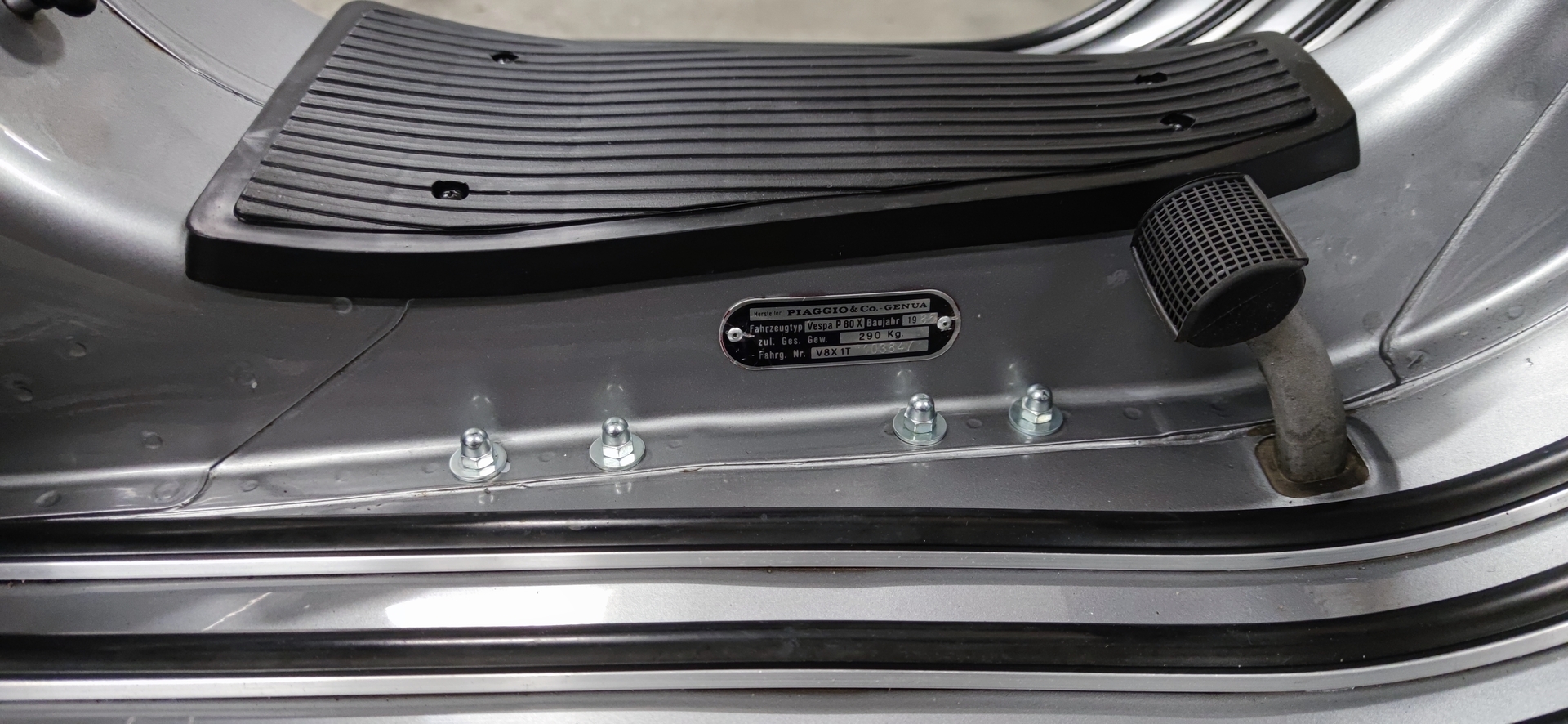 Eine Andere Sitzbank (Sportsitzbank SIP EVO 3.0) und eine PX Kaskade habe ich auch gefunden. Diese und das Handschuhfach müssen allerdings noch lackiert werden. Die Vespa ist zwar silber, aber ich weis nicht genau welches silber es ist und ob es überhaupt ein original Farbton ist.