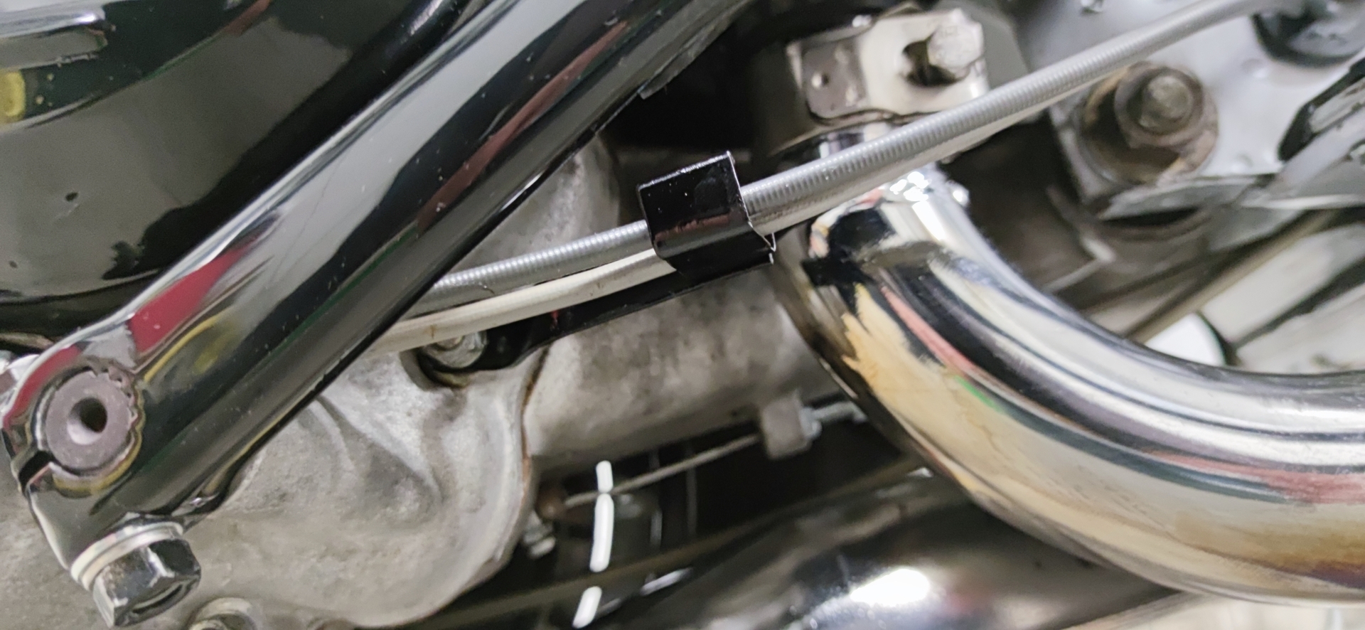 Habe mal, die Stütze für die Schaltzüge geschliffen, grundiert und schwarz Hochglanz lackiert.