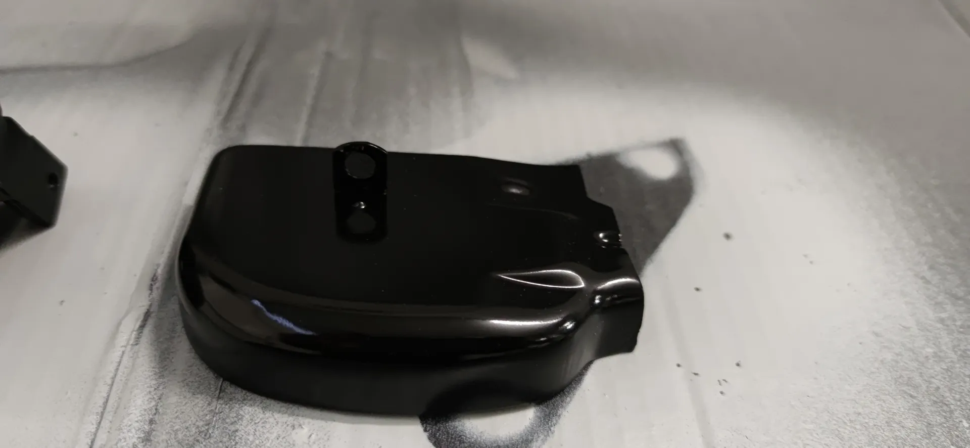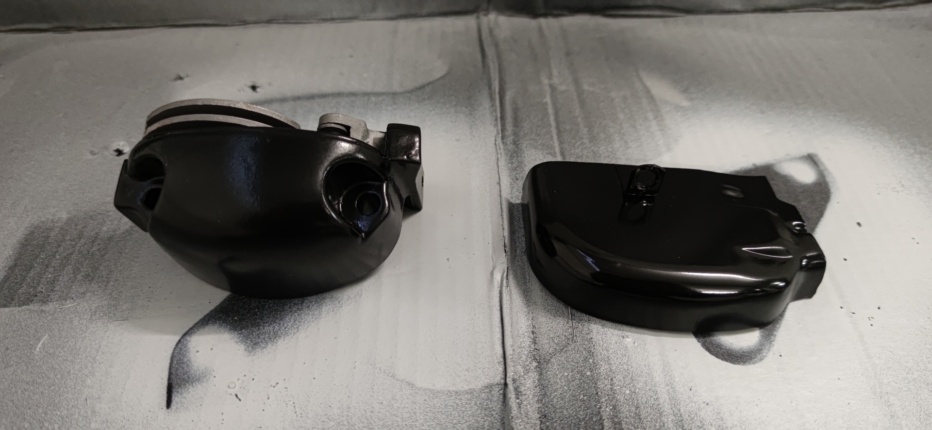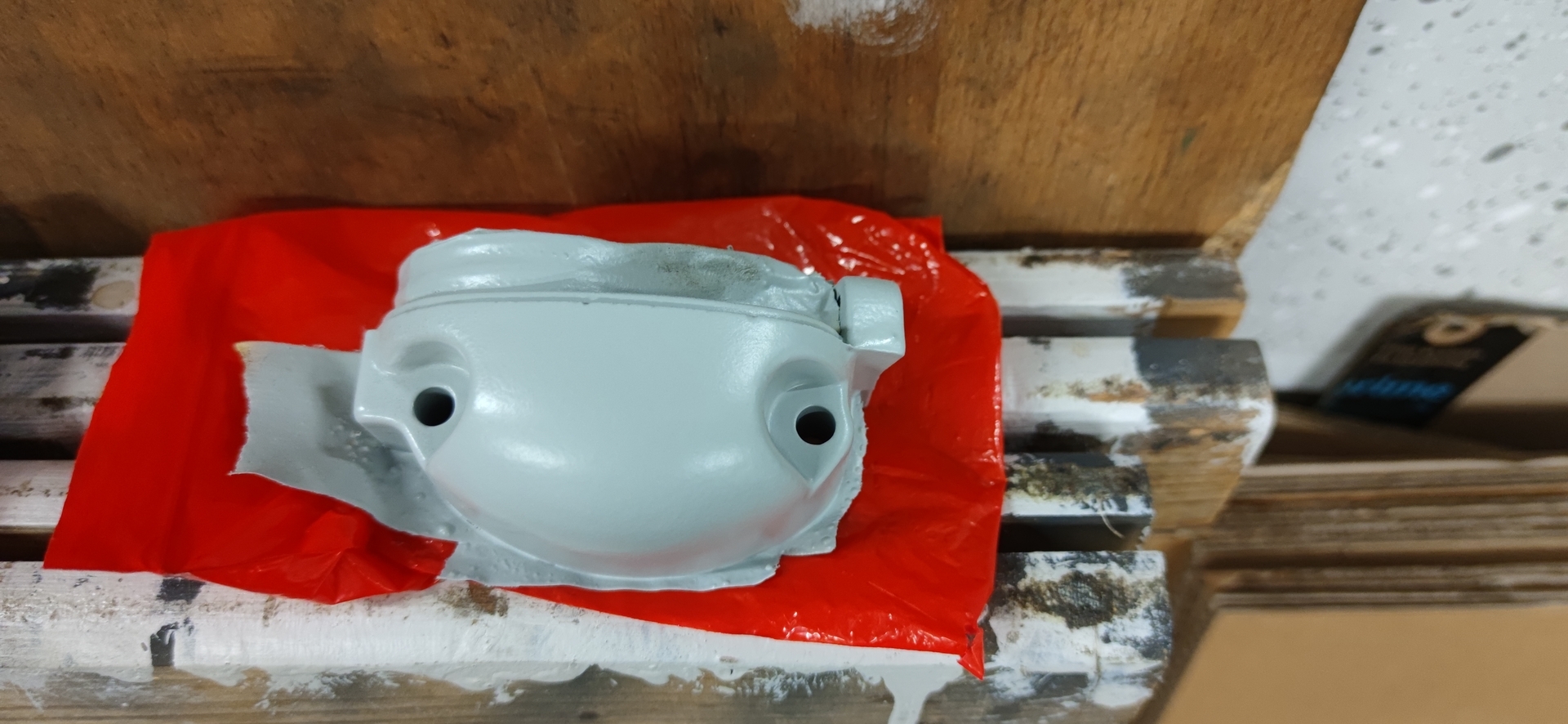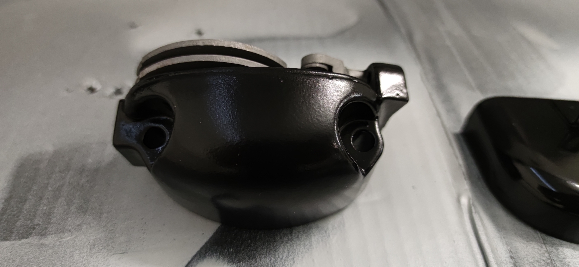 Da mir ja ein Vernünftiger Spiegelhalter gefehlt hat und in der Kiste gleich zwei Stück drin waren, habe ich die Halter zusammen mit einer Schaltraste und der Abdeckung Glasgeperlt und grundiert. Heute wird geschliffen und anschließend Primer aufgebracht.