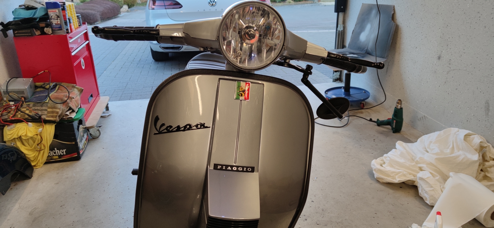 Dann habe ich vorgestern bei Kleinanzeigen ein Schnäppchen gemacht. PX Lusso Motor (80er) mit defektem Drehschieber, sehr viele Ersatzteile, Kleinteile, Werkzeuge, Vergaser, Vergaserwannen und Deckel, Auspuff, Polrad, Lima, usw. für sehr schmale Talers.