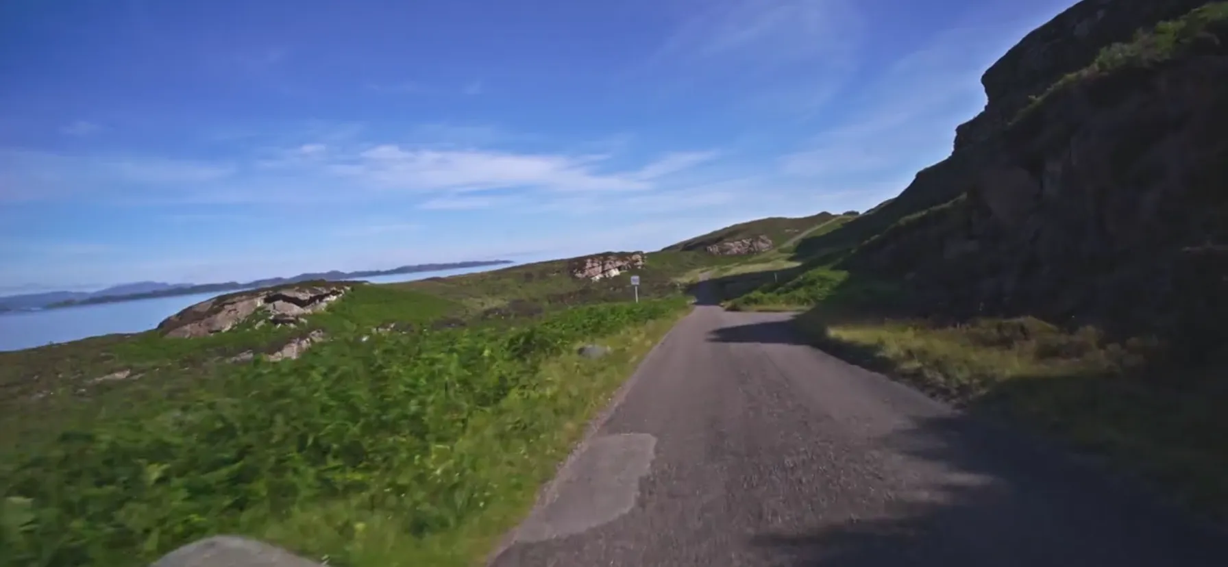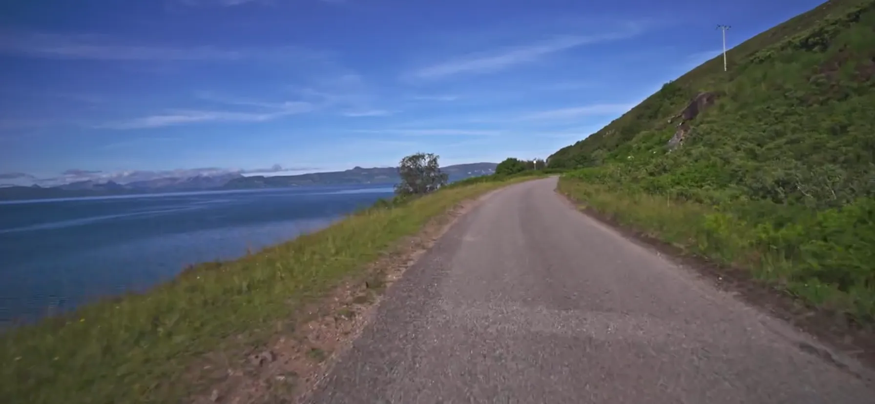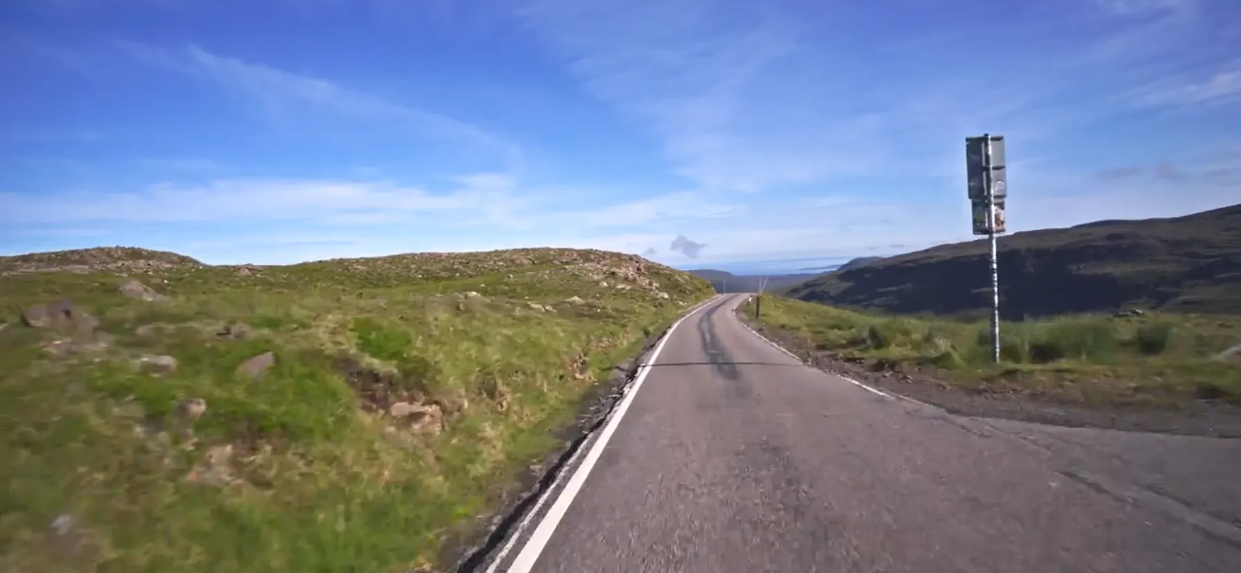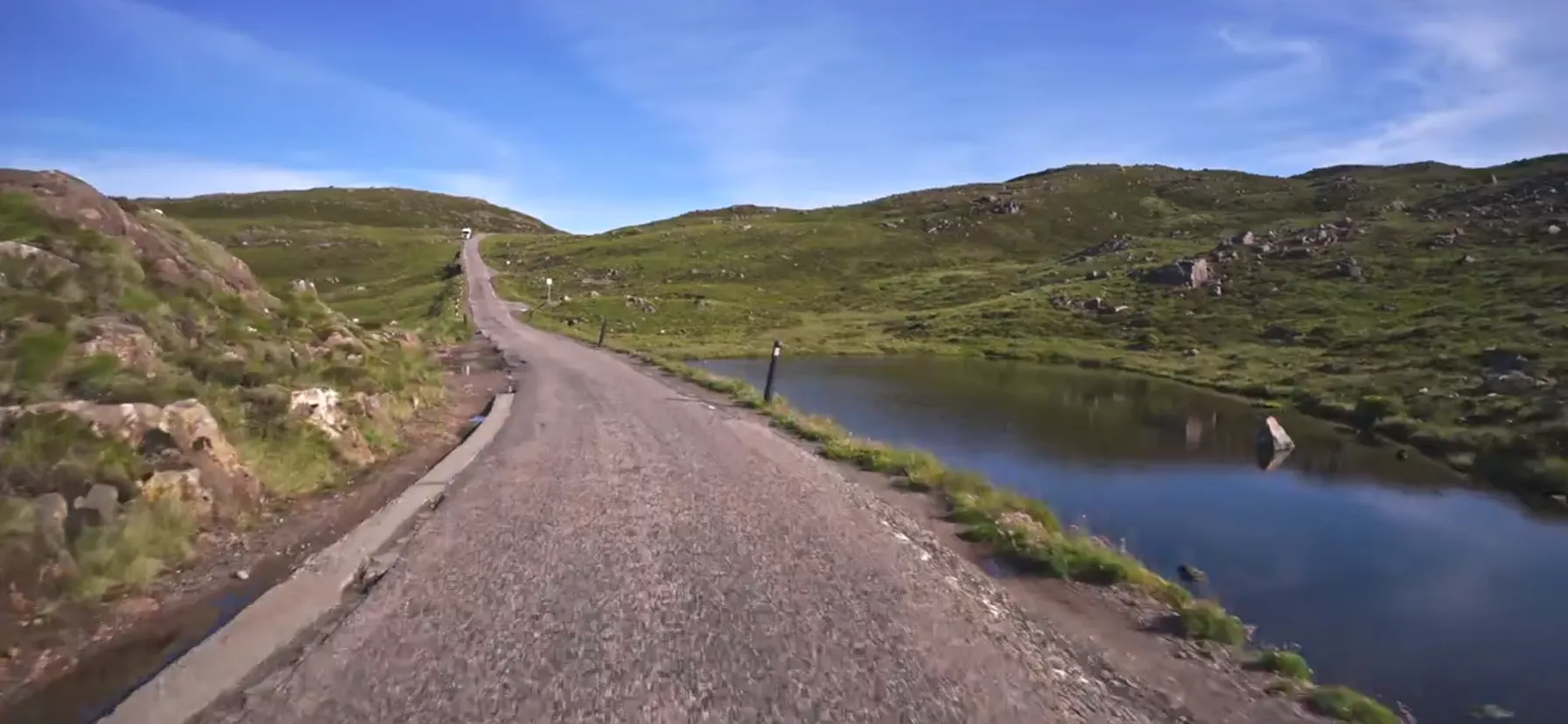 Schon lustig zu sehen, dass Schafe und Hochlandrinder da fröhlich auf der Straße unterwegs sind. Im Video kommen da einige Busse entgegen und Fahrzeuge sind in beiden Richtungen unterwegs. Dürfte als im realen Leben echt ein Erlebnis sein da rumzufahren. Übers Video sind einige Schlaglöcher zu erahnen. Ob die gefahrene Strecke durchweg geteert ist, ich hatte da so meine Zweifel.