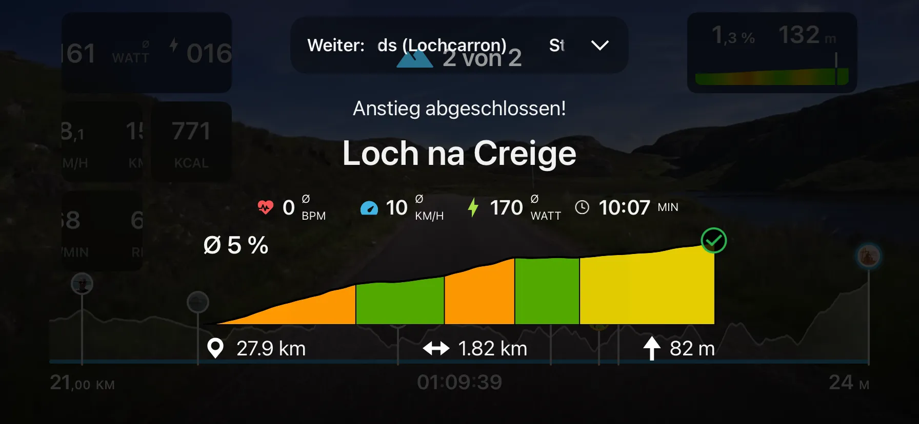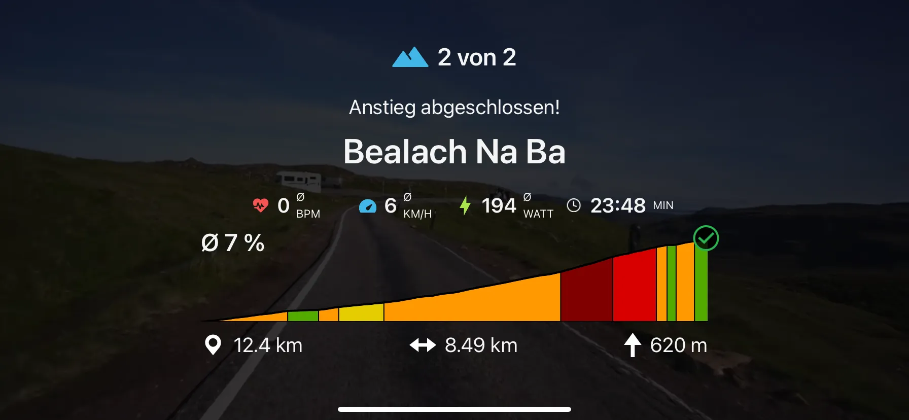 Insgesamt habe ich die Berg-Challenge mit maximal 15,6 % Steigung jetzt geschafft!