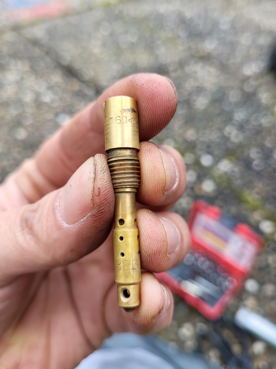 Die Dichtung habe ich dann zusammen mit einer neuen Zündkerze und der Elektronikzentrale bestellt. Dann den Luftfilter mit Bremsenreiniger gesäubert, die Düsen durchgepustet (Kompressor) den Vergaser und den Zylinder gelüftet und auf die Ersatzteile gewartet. Paar Tage später habe ich dann Elektronikzentrale und Dichtung dran geschraubt und Zündkerze gewechselt und angetreten. 3. Kick, Karre läuft, ich gebe Gas, Sie reagiert... 30 Sekunden lang, dann säuft sie ab.
