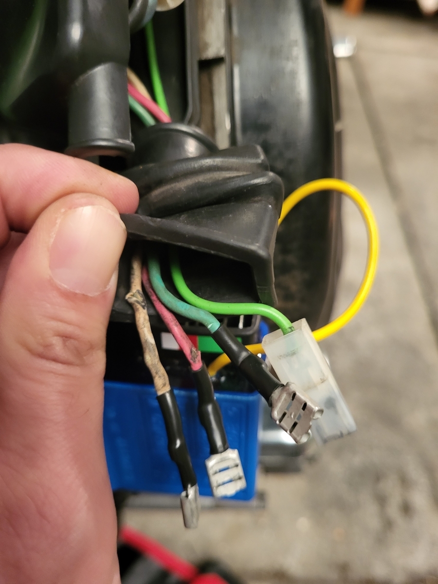 Das Kabel unten war stark korrodiert. Isolierung und Kabel zerbröselten bei Berührung. Ich habe dann etwas überbrückt um zu gucken ob es daran liegt. Sie sprang kurz an aber ging wieder aus als ich Gas gegeben habe. Also hab ich vermutet, dass die Kabel zu marode sind um unter Last genug Strom zu liefern und eine neue Elektronikzentrale auf die Bestellliste geschrieben.