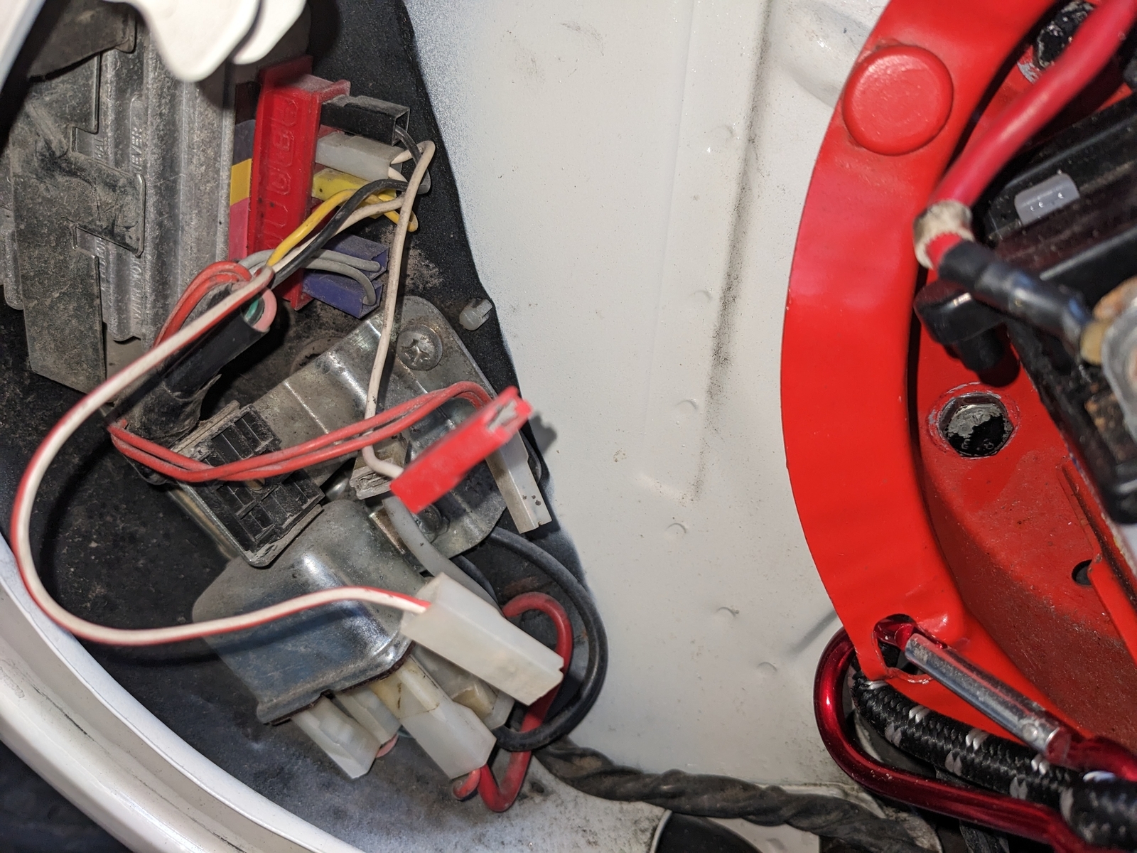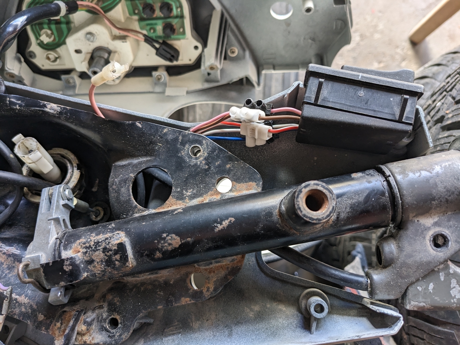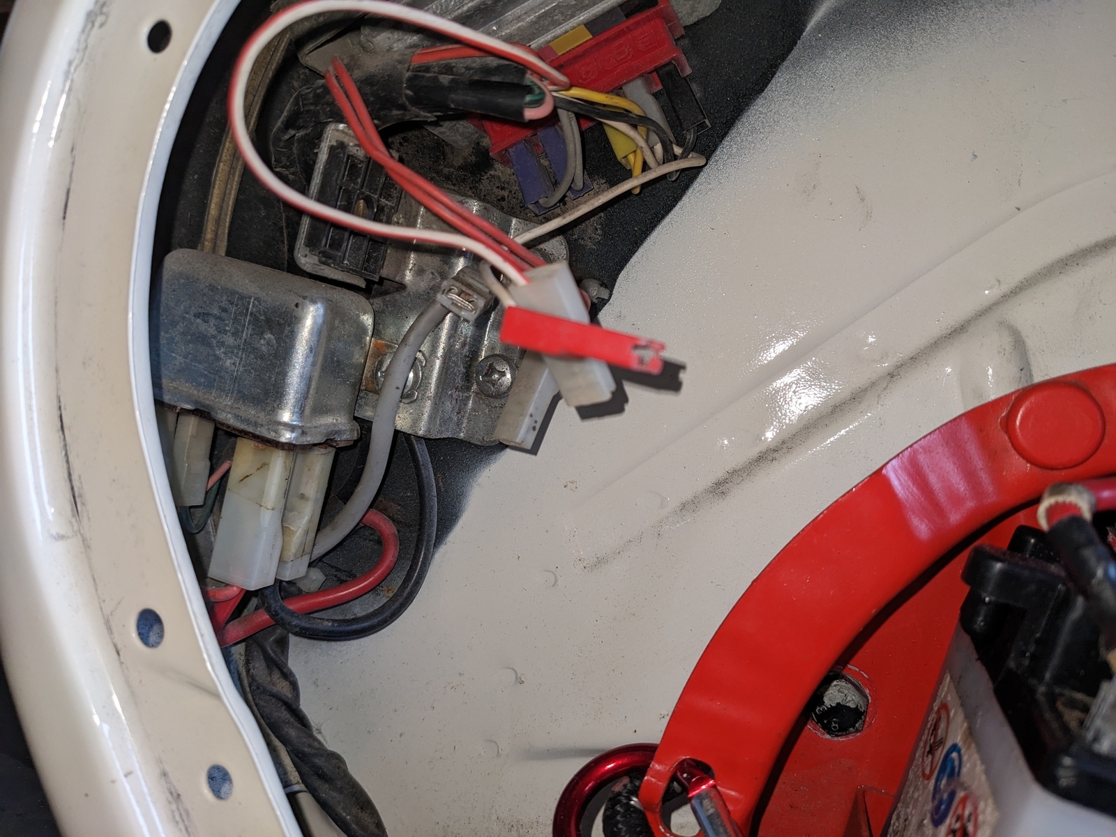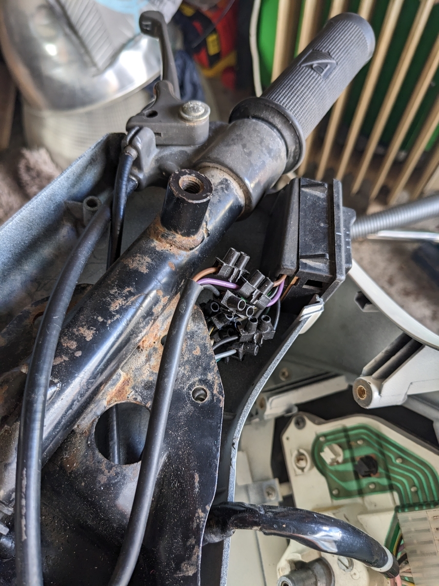 Die Probleme mit der Elektronik sehen wie folgt aus: die Blinker auf der rechten Seite funktionieren problemlos, auf der linken Seite leuchtet der Blinker hinten dauerhaft und vorne tut sich garnichts. Das Blinkerrelais hat nur 2 Kontakte.