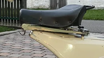 Die beiden hinteren Befestigungsschrauben incl. der Auflagen waren noch original vorhanden, nur an der vorderen fehlte alles. Ich werde auch irgend eine Gummischeibe unterlegen. Der Gummiblock am Sitzgestell ist auch noch vorhanden.