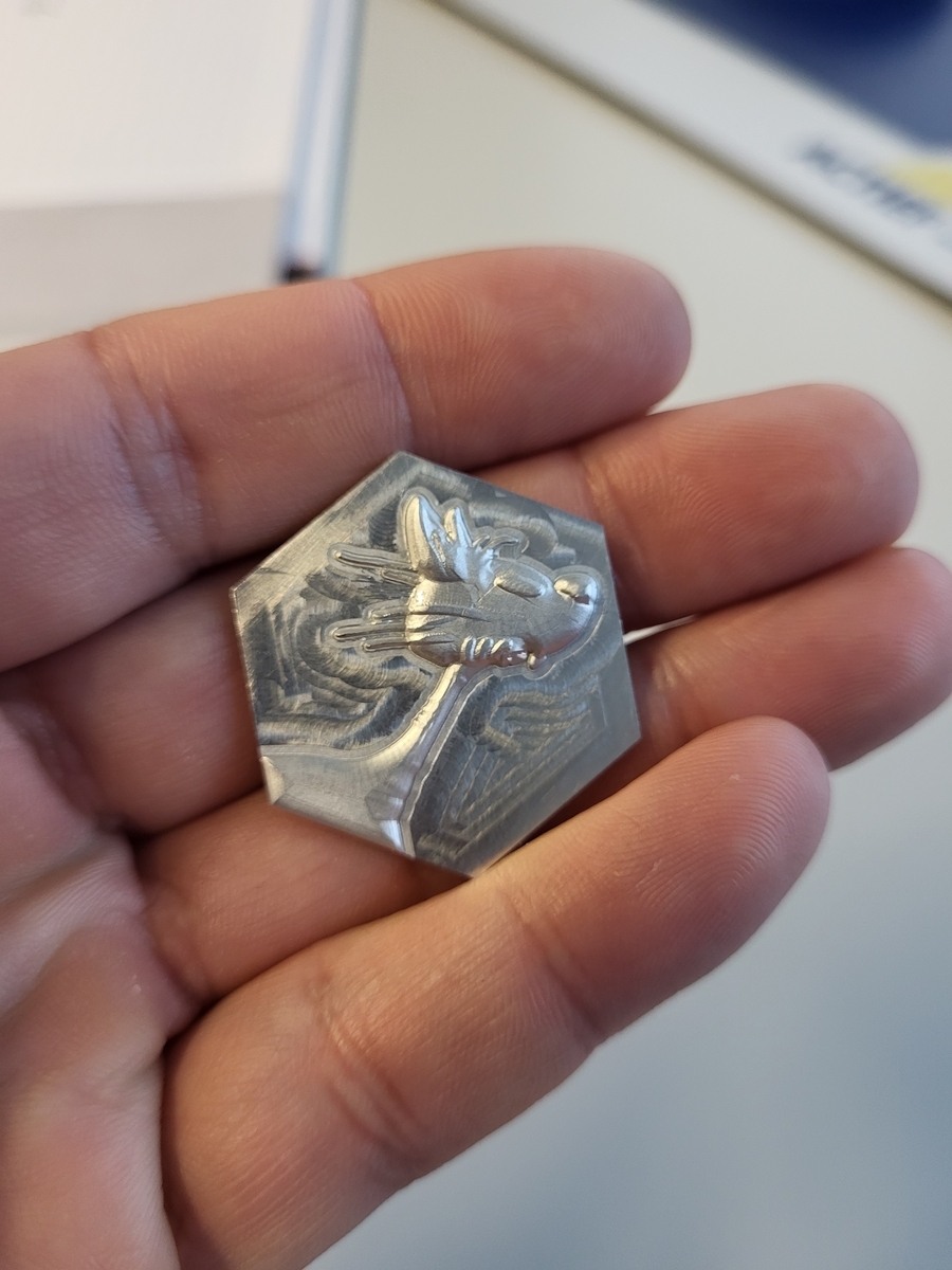 Wir haben hier im Werkzeugbau in der Firma eine Fräse. Da hab ich das unter Anleitung aus Aluminium gefräst. Und dann sandgestrahlt. Ist eigentlich sehr einfach. Man gibt die Vorlage in den PC ein und editiert bissl rum. Legt den Werkstoff in die Fräse und drückt auf GO. Wie gesagt, arbeite ich in einem Metallverarbeitenden Betrieb mit eigenem Werkzeugbau. Das hat ziemlich viele Vorteile.