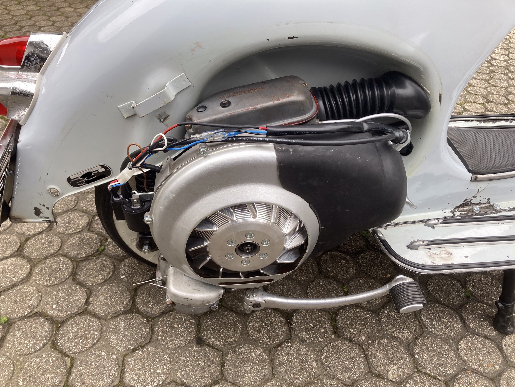 Der 3-Gang Motor war Totalschaden, wir haben bereits einen 4-Gang Ersatzmotor in Arbeit, den wir auf 3-Gang umbauen. Da der TÜV eine Blinkanlage vorschreibt, ist die Idee einen entsprechenden Kabelbaum mit Blinkerkabeln einzubauen. Unschlüssig sind wir uns noch über die Zündung. Gerne würde ich die Vespa wieder original aufbauen, aber die Vorteile einer elektronischen Zündung liegen auf der Hand.