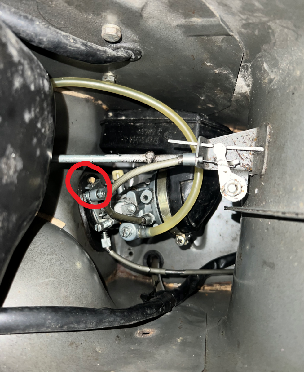 Es gibt an meinem Vergaser eine Art Seil welches in eine Vorrichtung gespannt ist mit einem runden Metallaufsatz am Ende. Dieses muss ausgehangen werden, um den Vergaser aus dem Motorraum auszubauen.