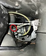 Es gibt an meinem Vergaser eine Art Seil welches in eine Vorrichtung gespannt ist mit einem runden Metallaufsatz am Ende. Dieses muss ausgehangen werden, um den Vergaser aus dem Motorraum auszubauen.