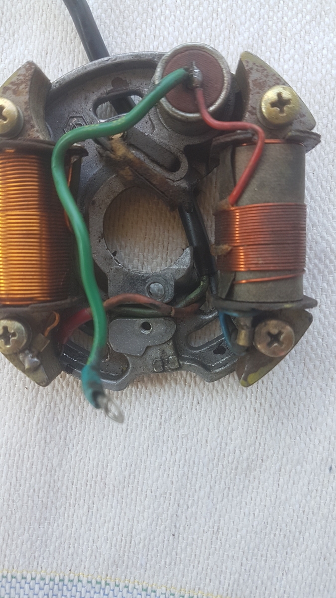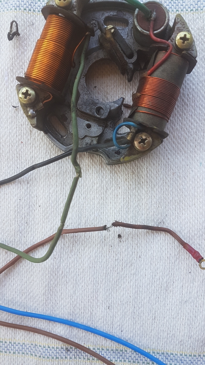 so ich hatte das Polrad runter und der Salat war da. Habe im Anhang mal 2 Bilder hinzugefügt. Ich habe anschließend neue Kabel angelötet.