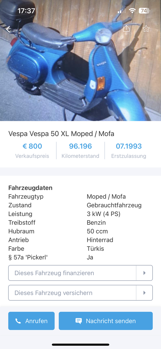 Vespa Vespa 50 XL Moped / Mofa https://www.willhaben.at/iad/gebrauchtw…mofa-689215400/