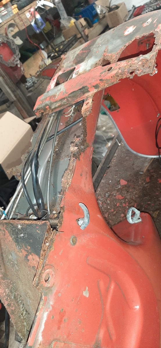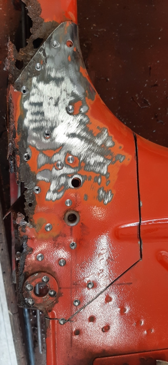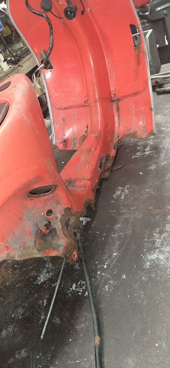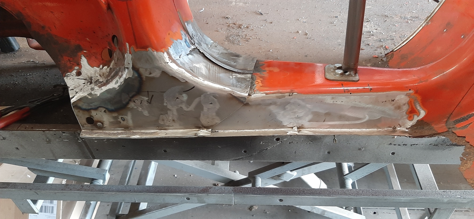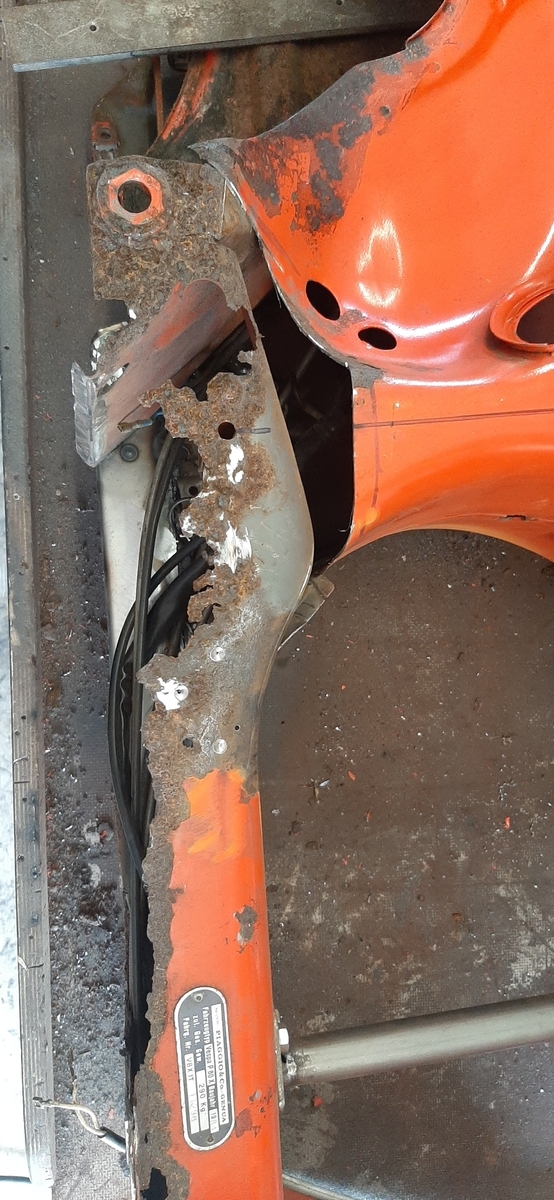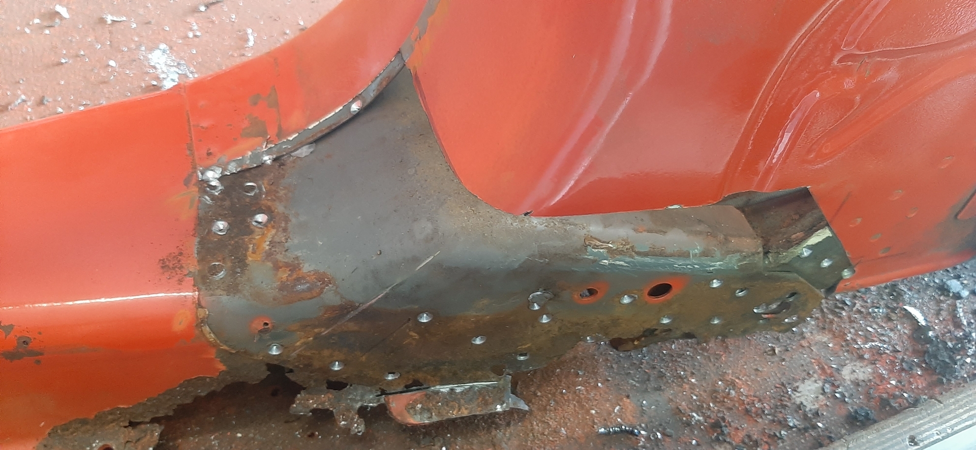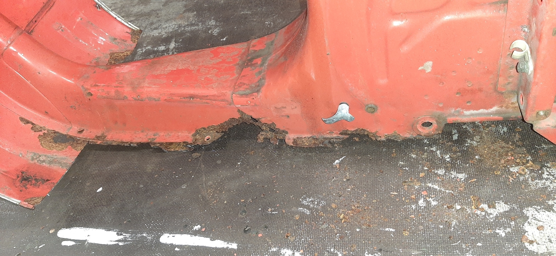 Das Bodenblech war teilweise noch vorhanden, was man vom Bereich des unteren Rahmens nicht gerade behaupten konnte !