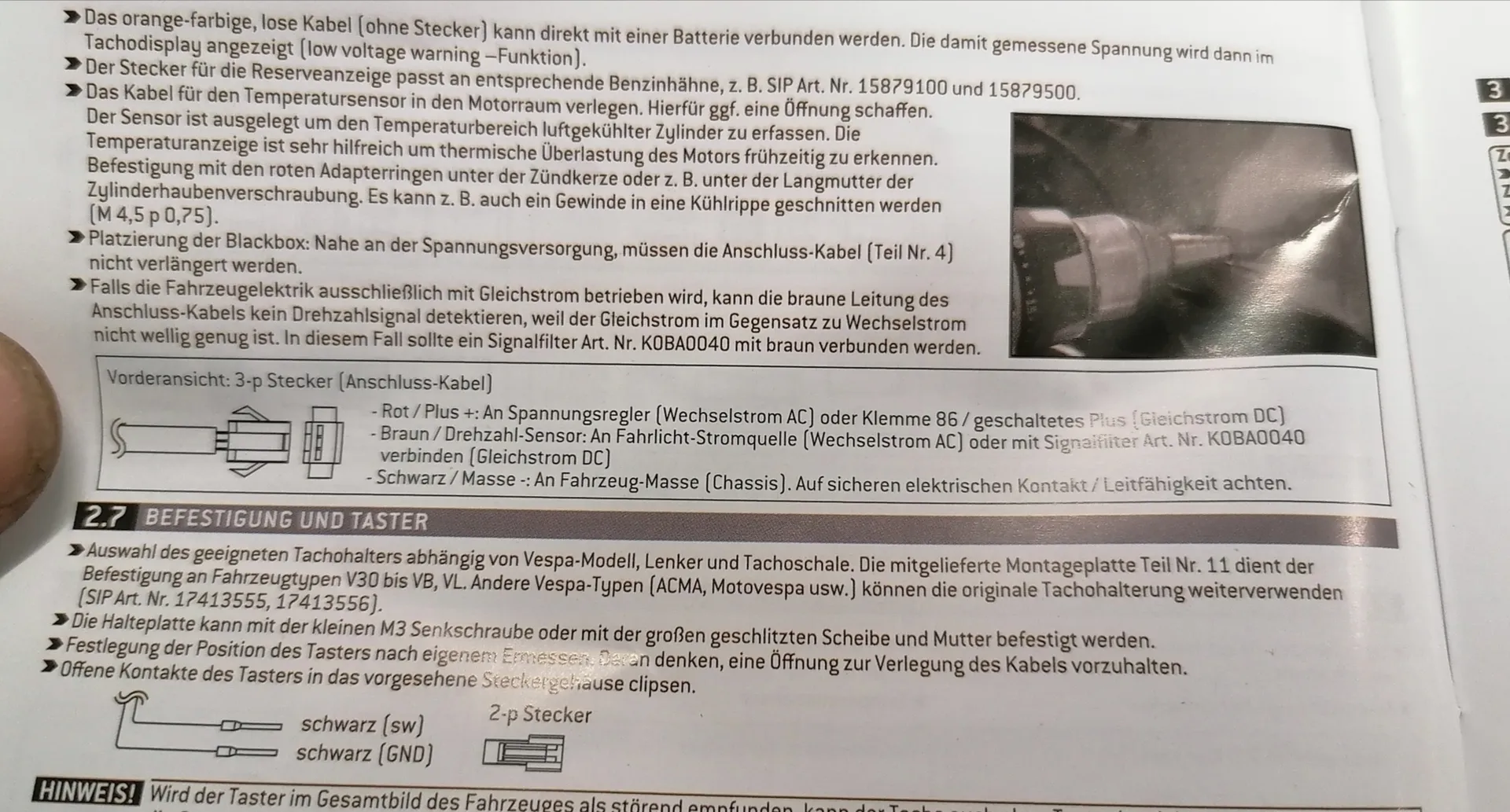 Frage also: kann mir jemand sagen, welches Kabel am SIP 2.0 Tacho für PX Lusso welchen Zweck hat ? Die Zwecke der Kabel des Kabelbaums kenne ich.