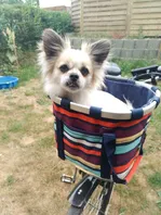 Habe ein Pet on Wheels Topcase, das er super finden sollte - vorne Korb am Fahrrad ist auch voll seins. Geht erst einmal nur um kurze Strecken zur Wiese, so dass wir auch mal große Runden ohne die Katze laufen können.