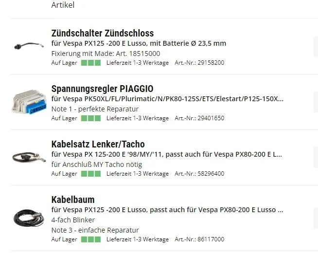 würde meine PX gerne auf Batterie und Gleichstrom umrüsten. Habe mir dazu ein paar Teile rausgesucht.