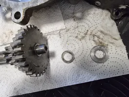 Zusätzlich habe ich noch gemerkt, dass unter der Nebenwelle zwei Unterlegscheiben waren. Das kenne ich auch nicht so. Hattet ihr sowas schon mal?