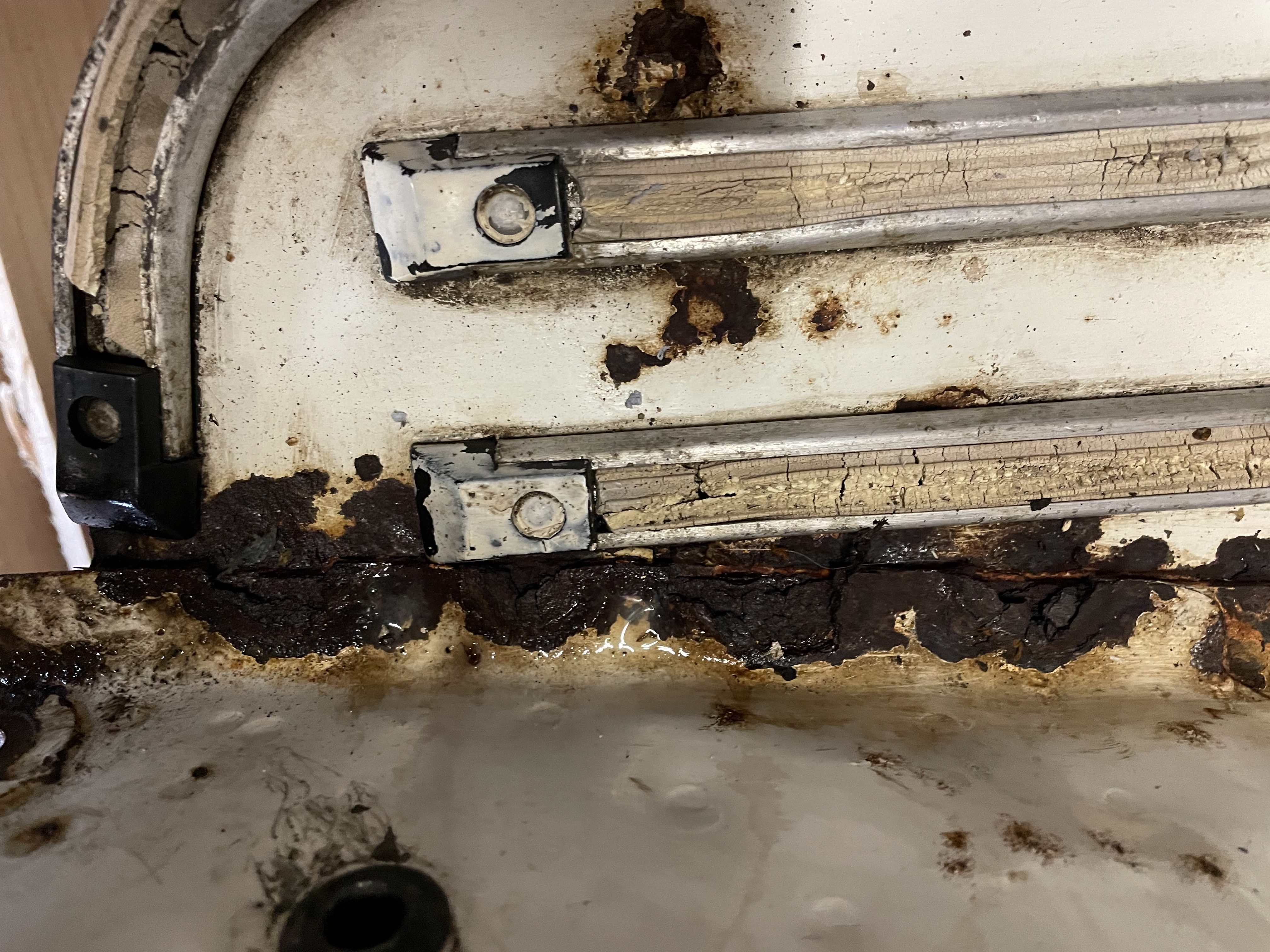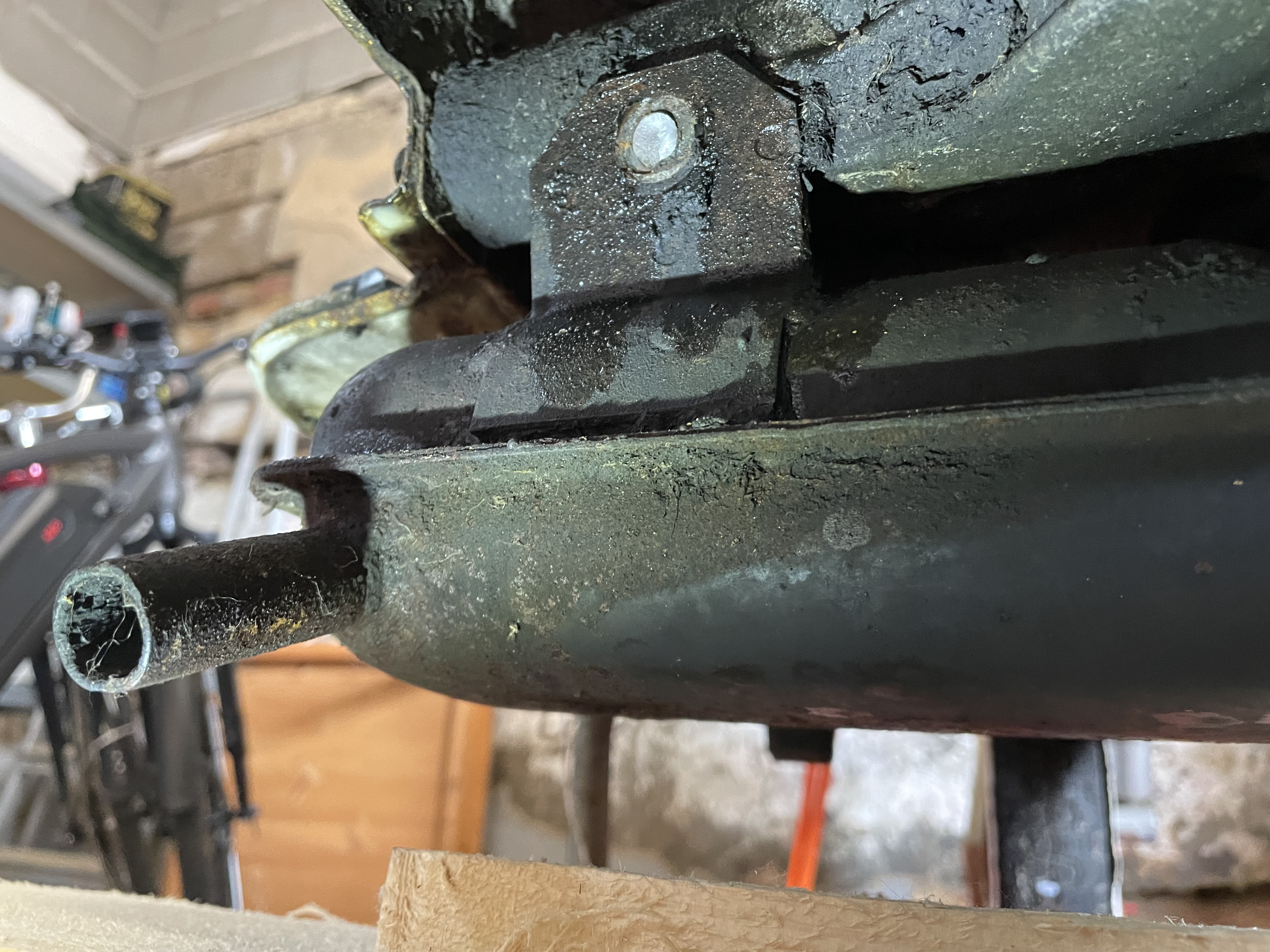 Die Traversen unten sind ok, nur im Bereich wo der Dreck vom Vordrrad hinfliegt ist ein kleines Loch.