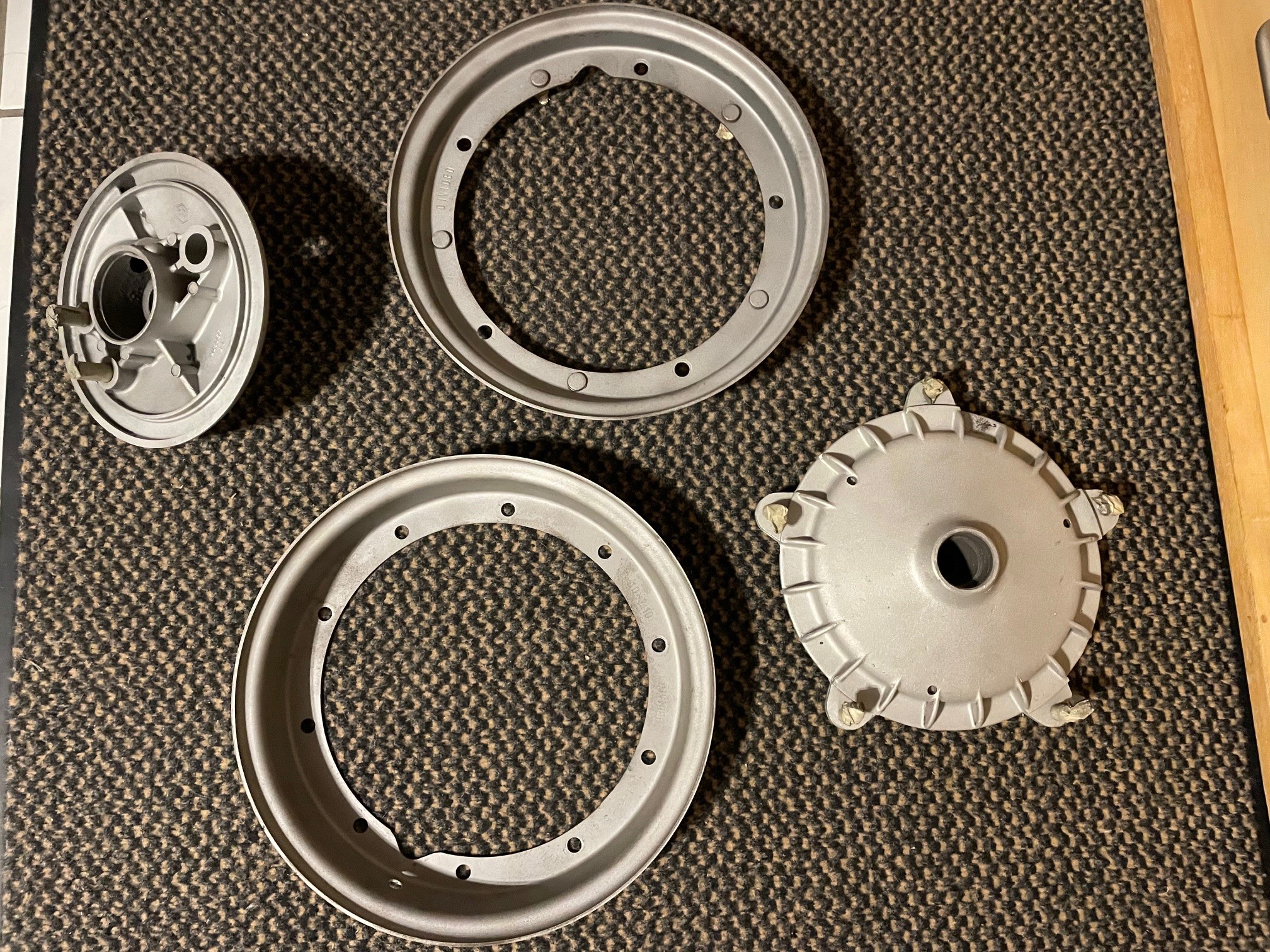 Ich habe noch etwas an den Felgen und Trommeln nacharbeiten müssen, jetzt werden sie noch mal kurz gestrahlt und dann werden sie in RAL 9006 Seidenmatt gepulvert.