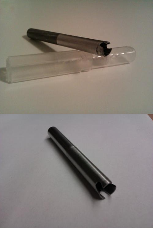Der ist relativ dünnwandig und "schneidet" das Zeugs zwischen Gehäuse und Bolzen raus.