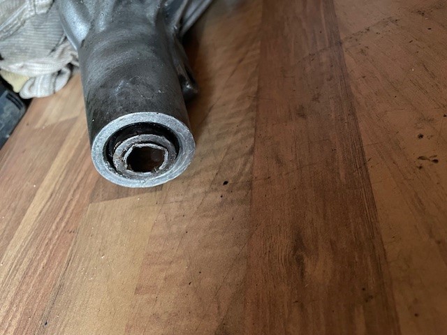 Der Wedi geht ja runter bis aufs Lager. Also sitzen würde der ordentlich. Ich schätze, an der Stelle, wo das abgebrochen ist fehlt ca. 1/3 bis 1/2 des Wedi-Sitzes. Die Frage ist, ob der dann noch genug Pressung für sicheren Halt hat. Die erste Rille, die man sieht, ist diese "Quetschrille" die ned Dichtring noch mal zusätzlich Halt gibt.