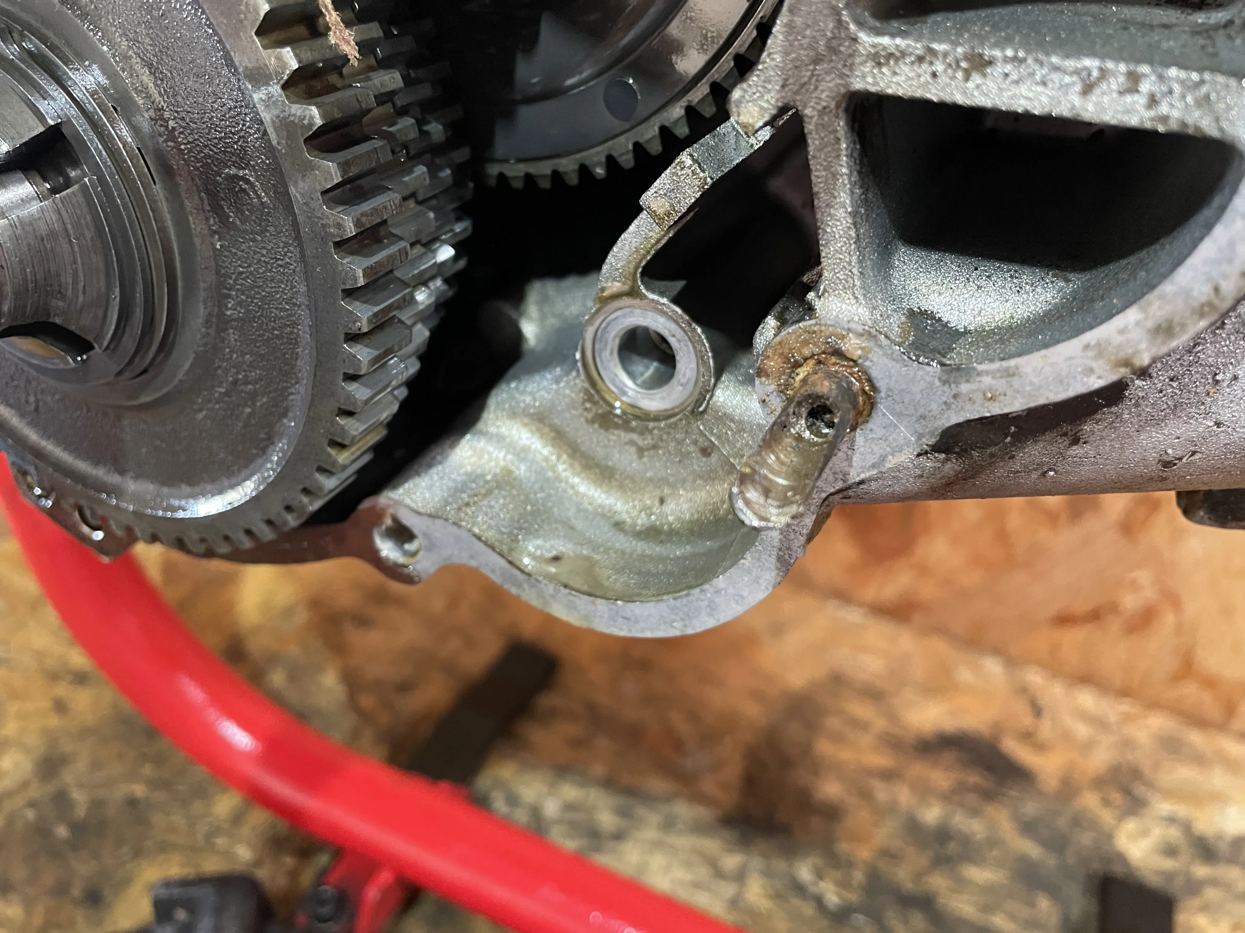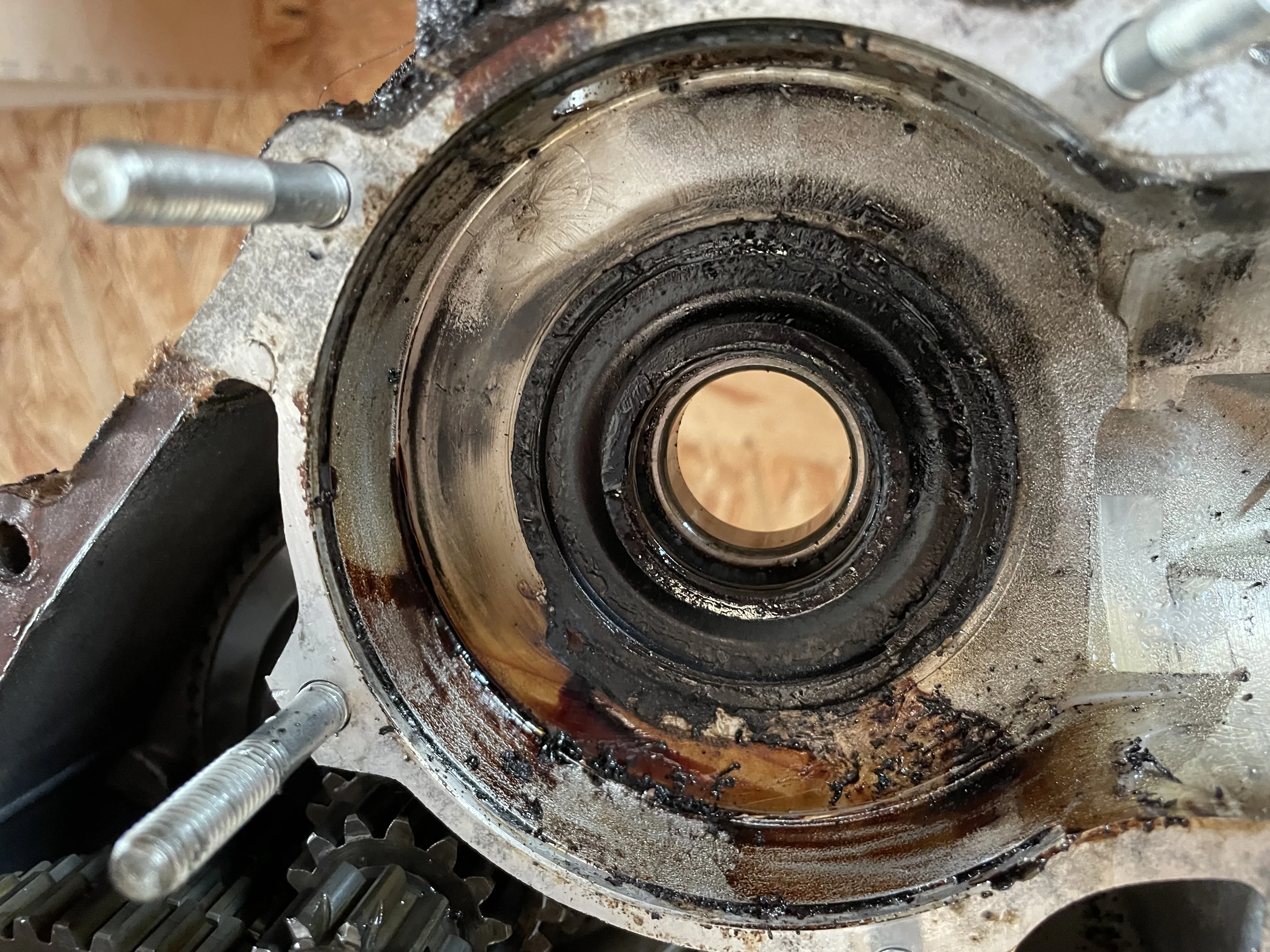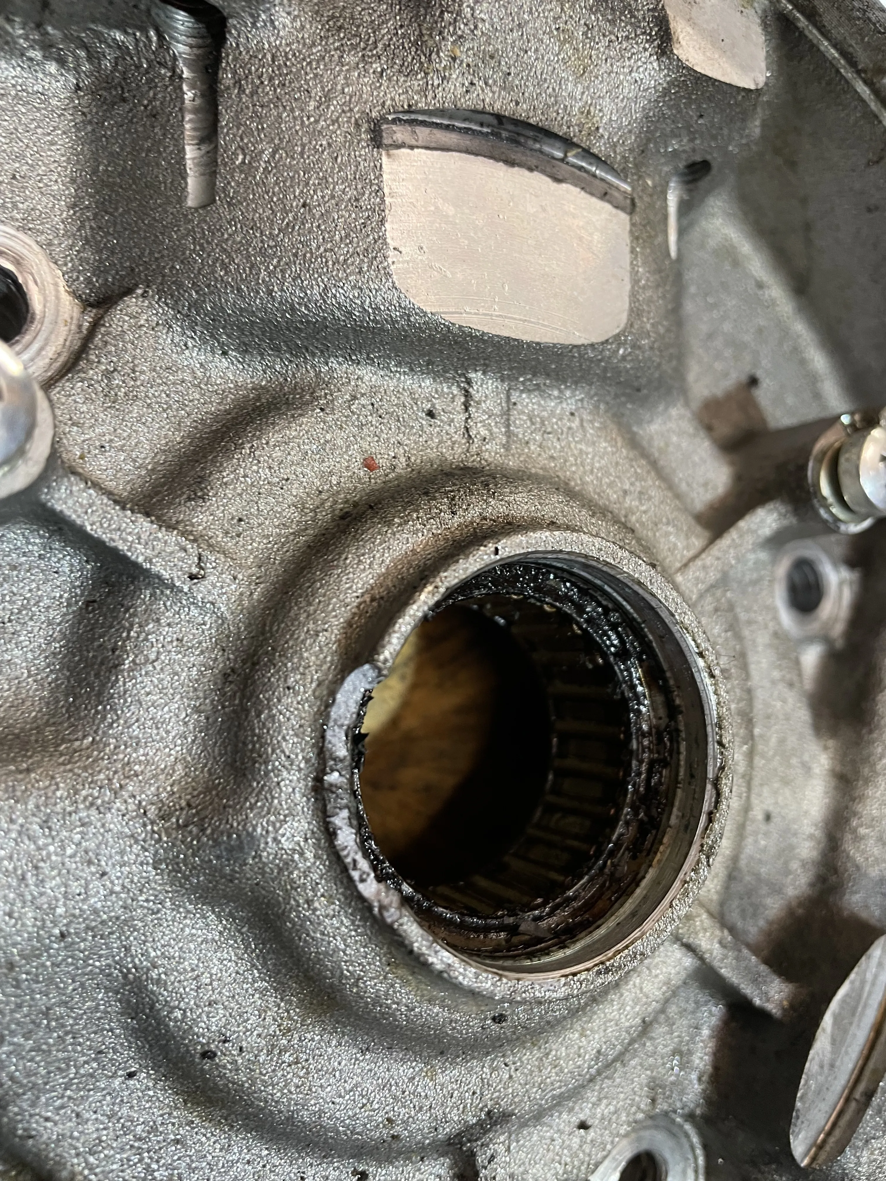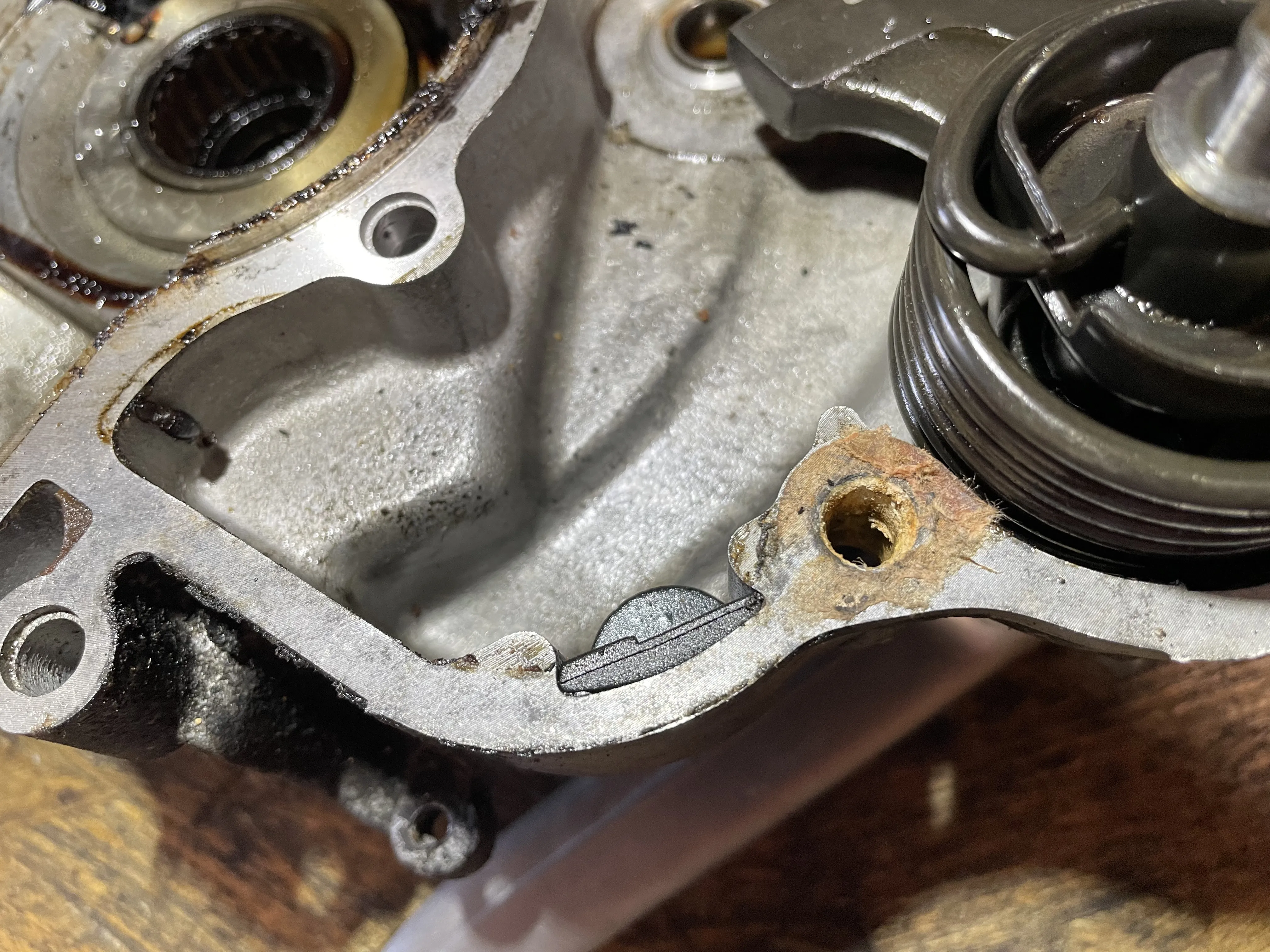 Der Wedi geht ja runter bis aufs Lager. Also sitzen würde der ordentlich. Ich schätze, an der Stelle, wo das abgebrochen ist fehlt ca. 1/3 bis 1/2 des Wedi-Sitzes. Die Frage ist, ob der dann noch genug Pressung für sicheren Halt hat. Die erste Rille, die man sieht, ist diese "Quetschrille" die ned Dichtring noch mal zusätzlich Halt gibt.