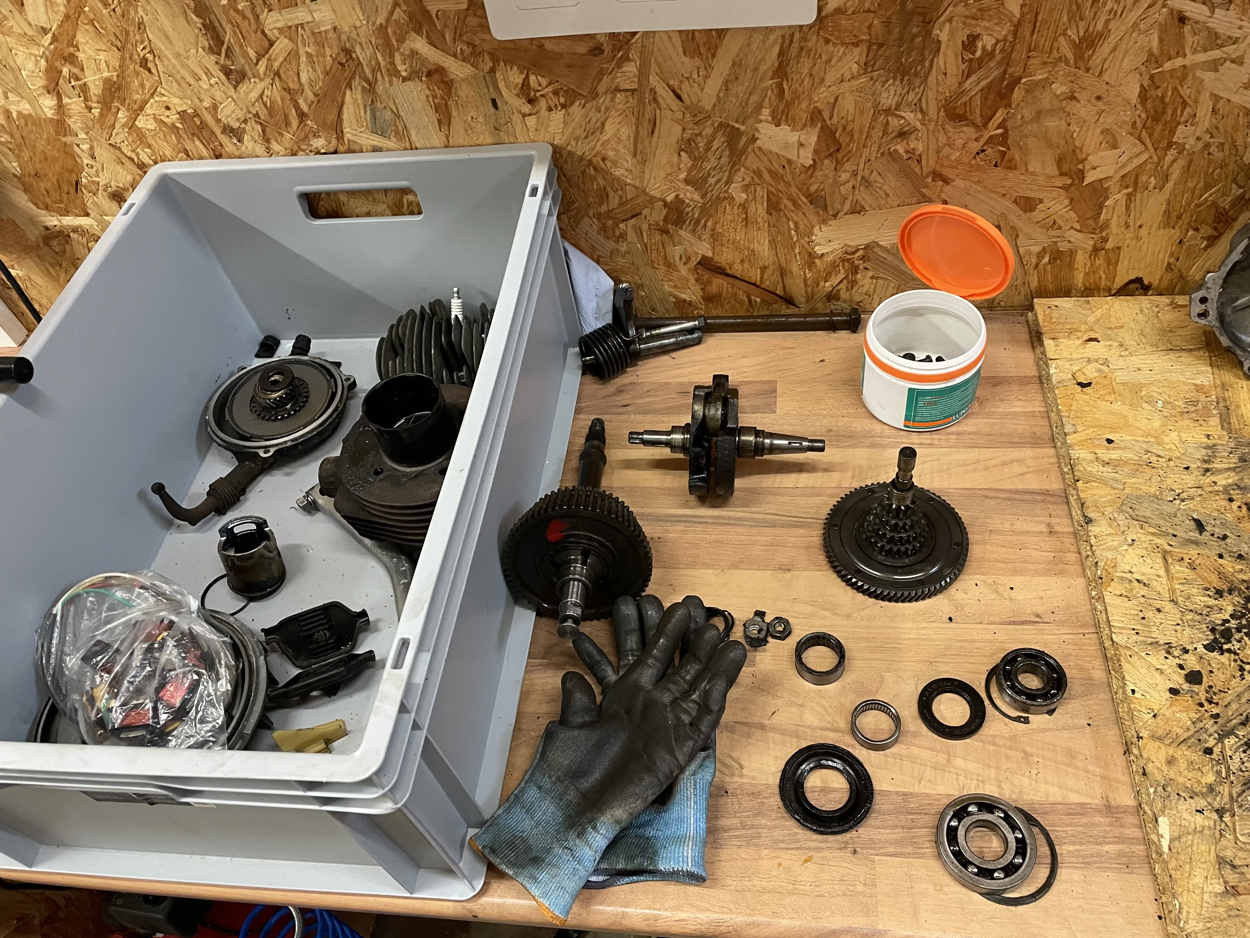 Sobald ein anderes Moped verkauft ist, gehen alle Karosserieteile zum Lackierer. Mal schauen, ob es bis zum nächsten Bericht etwas kürzer dauert