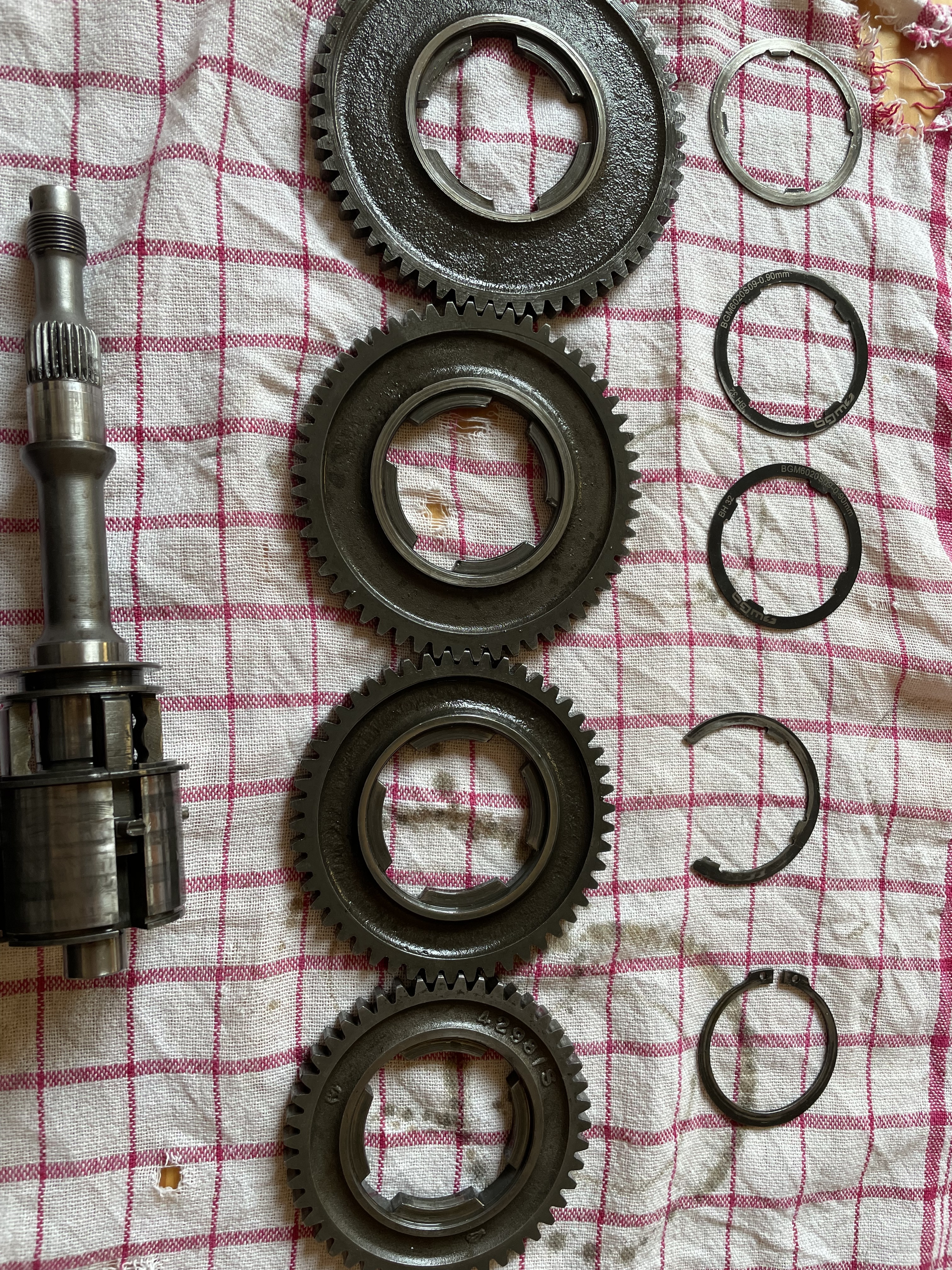 Habe jetzt endlich mal den Motor ausgebaut. Problem war am Anfang, Schaltung ging schwer. Irgendwann ist der 3. und 4. Gang raus gesprungen, Schaltung ging leichter zu schalten. Das Problem ist wohl eindeutig. Getriebe mit zu wenig Spiel ausdistanziert.