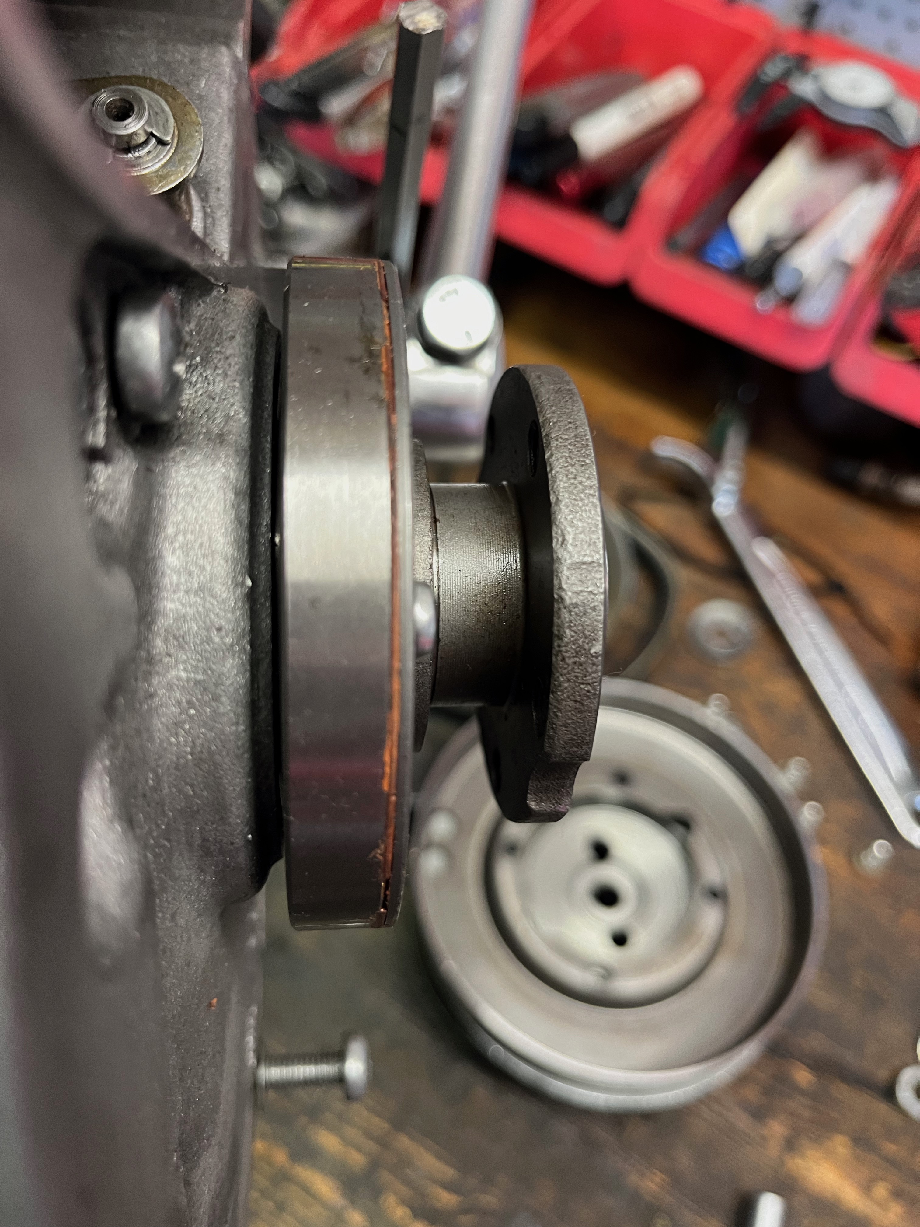 Der Fehler liegt irgendwo im Getriebe oder der Kupplung (untere Riemenscheiben).