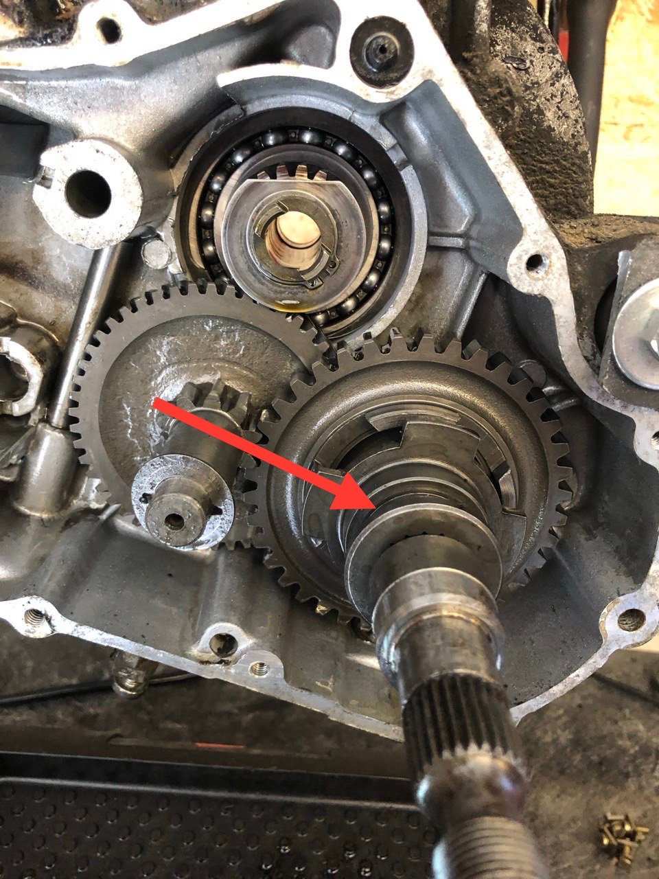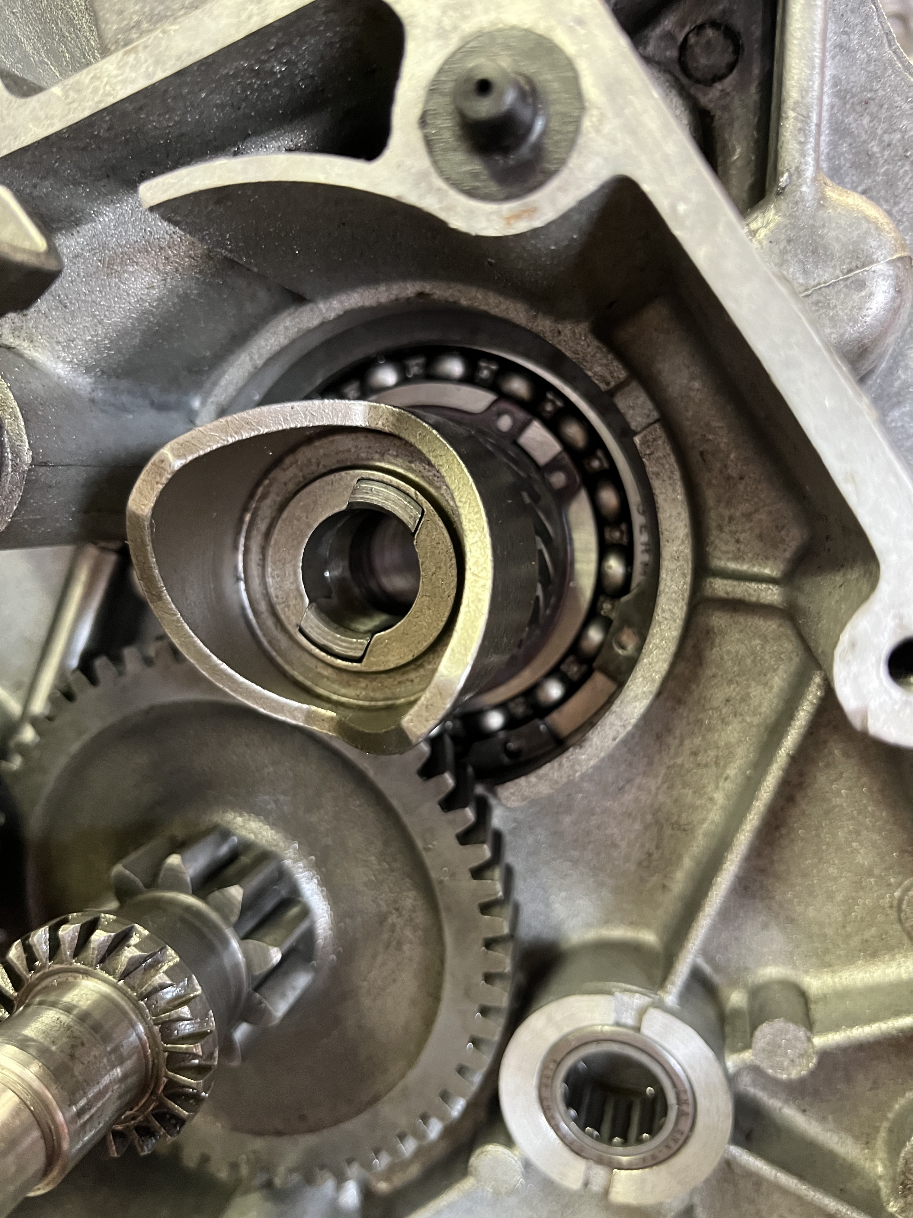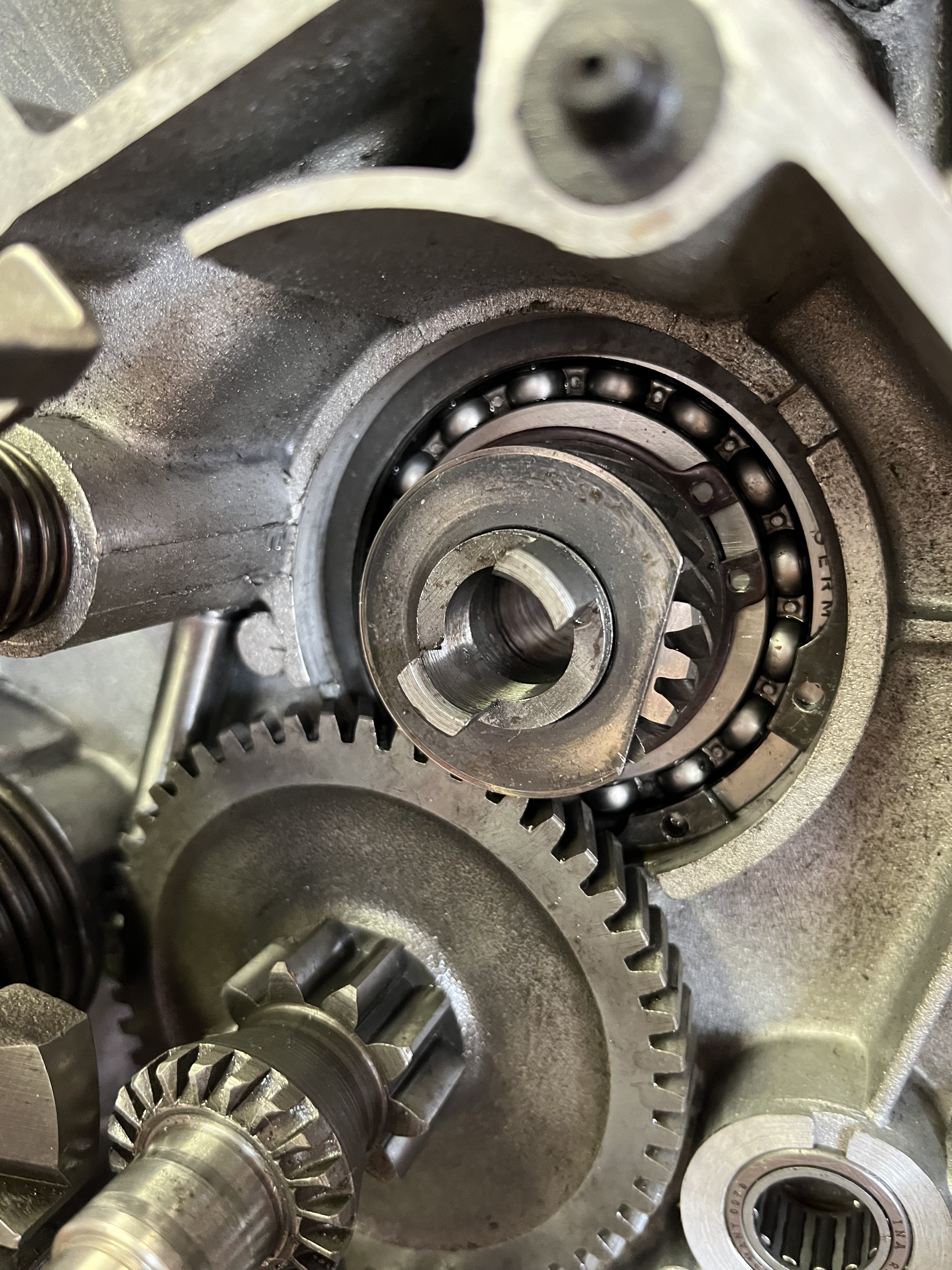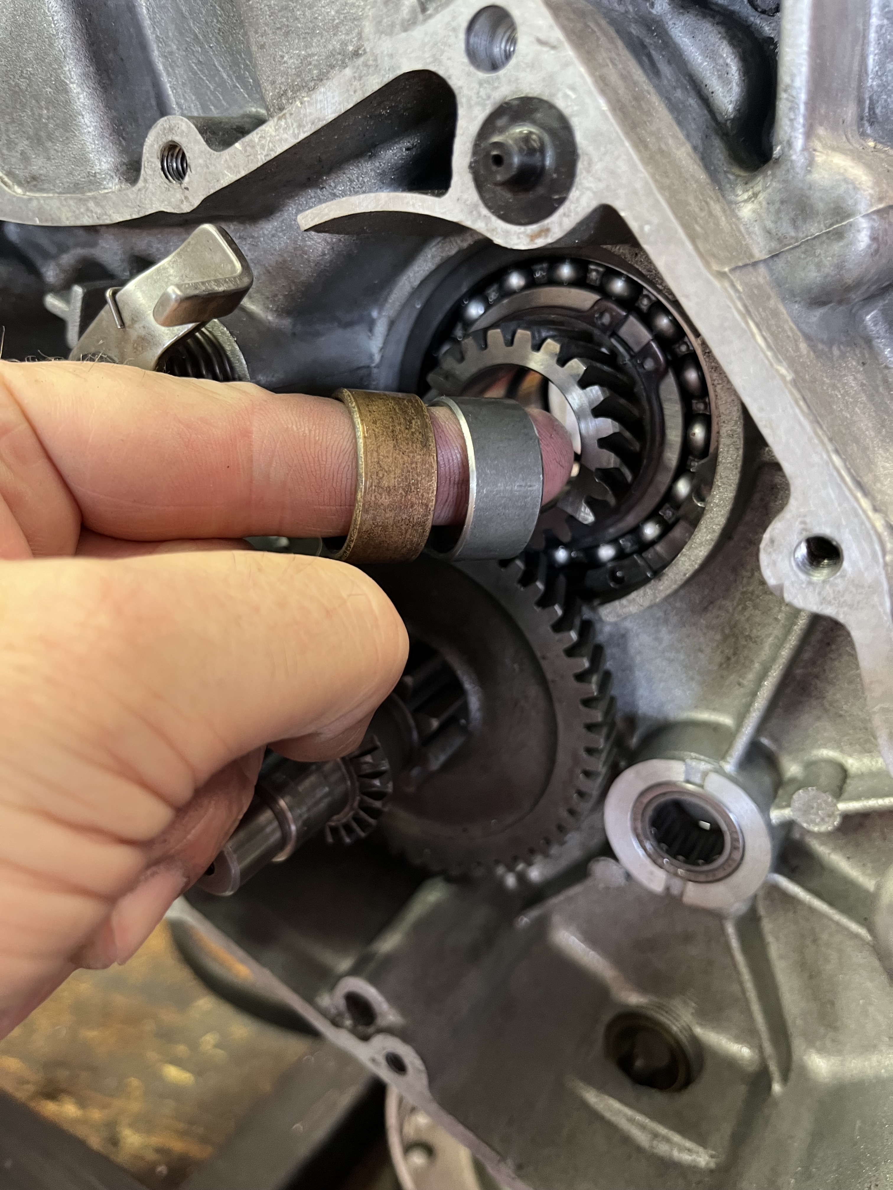 Ich hatte bei vespaforum.de schon einmal gefragt, ob der Schaltarm beim Zusammenfügen der Motorhälften richtig in die Muffe eingeführt ist.